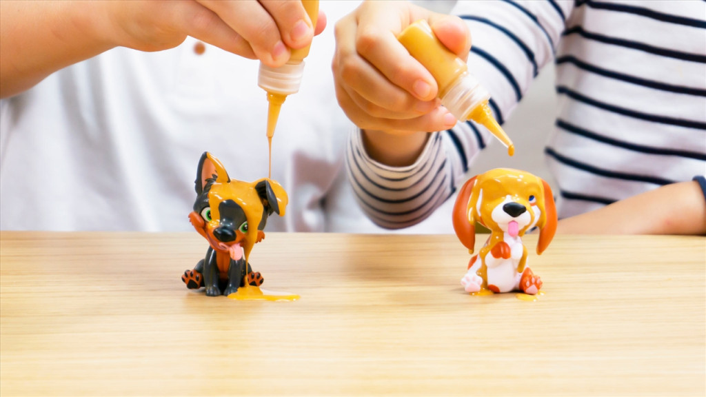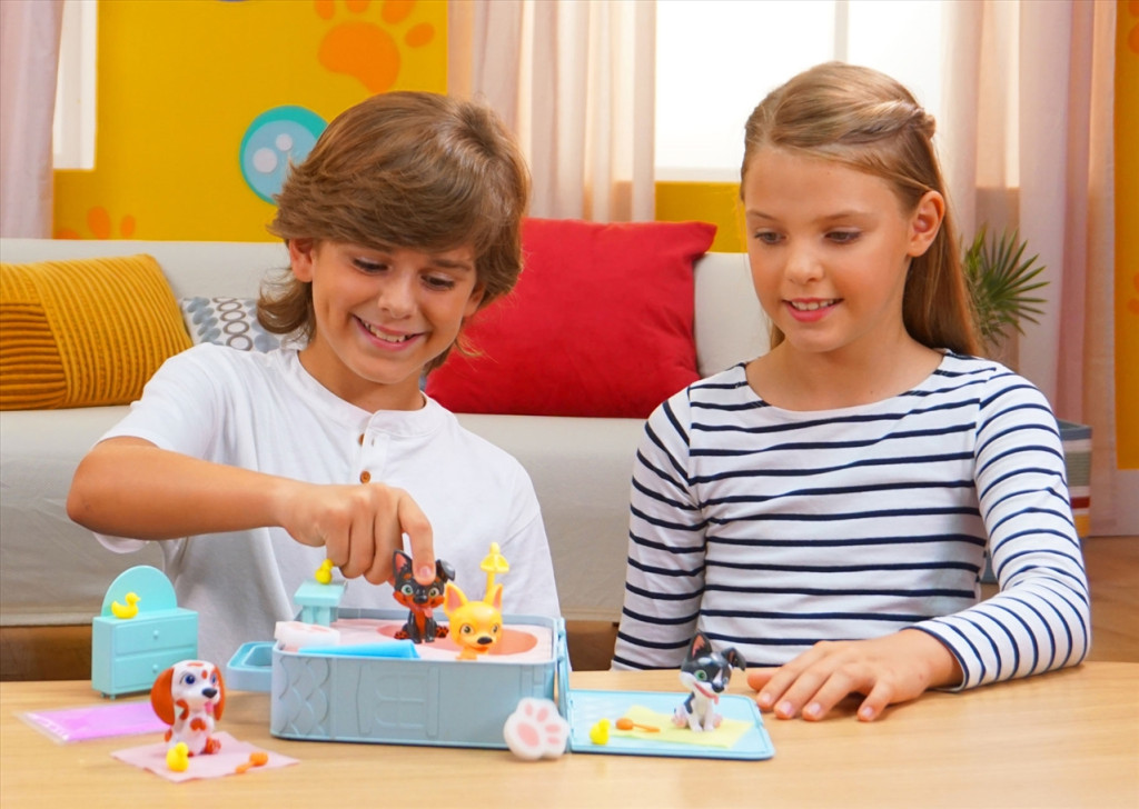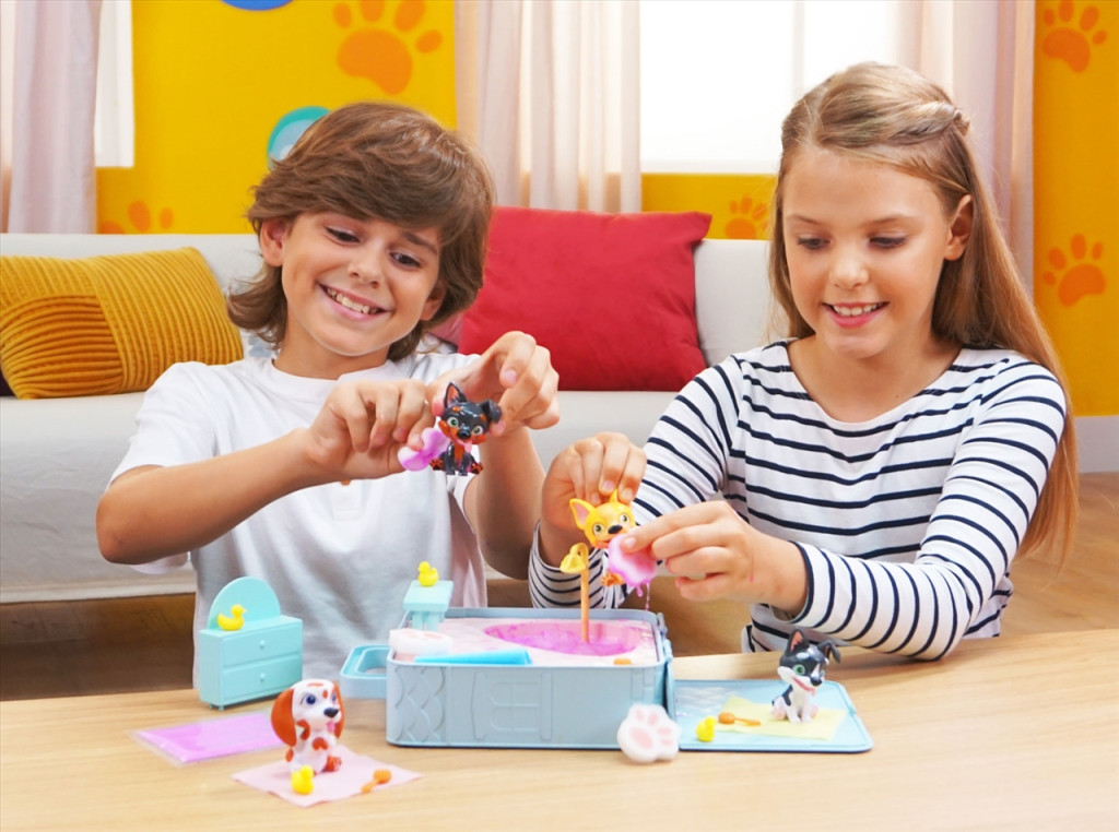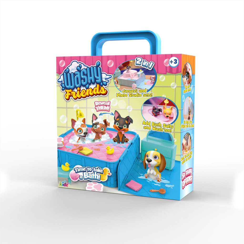 Ezek a Washy Friends Color Reveal Pancsoló kutyusok imádnak játszani, és "sáros" bundával érkeznek hozzád. Légy jó gazdija az ebeknek, és fürdesd meg őket, hogy szép szobatiszták legyenek. A csomag két különböző kutyus figurát, egy jacuzzit, egy tisztító kefét, egy mancstisztító szivacsot, egy törölközőt, egy adag fürdősót és egy gumikacsát tartalmaz a pancsoláshoz, valamint egy extra adag barna trutyit az újrajátszáshoz. A szettel pancsolás közben egy corgi, egy beagle és egy boston kölyök bújik elő.