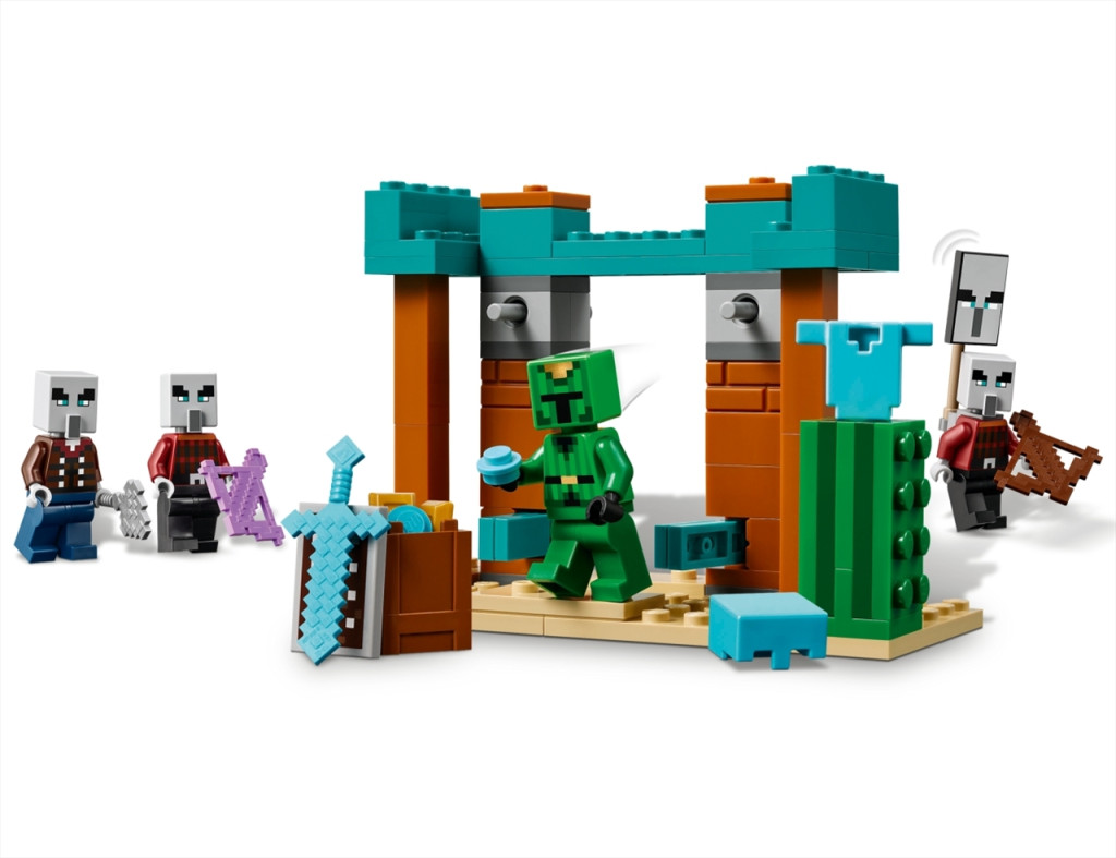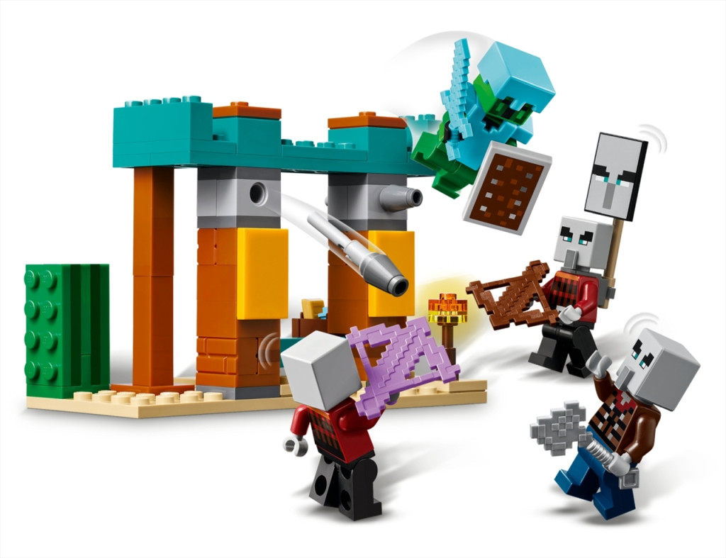 A helyszín a Minecraft sivatagi előőrse, ahol a gyerekek a Kaktuszlovag szerepébe bújhatnak, aki gyémántpáncélt visel, valamint pajzsot és kardot tart. Amikor a 3 illagerfigura megérkezik, hogy ellopják a kincset, a gyerekeknek meg kell védeniük az előőrsöt. A készlet tartalmaz lövedékeket, amelyeket a gyerekek egy ujjpöccintéssel kilőhetnek, különféle fegyvereket és egy hordót, ami a kincseket rejti. Az extra digitális szórakozás érdekében a LEGO Builder appal a gyerekek 3D-ben felnagyíthatják és elforgathatják a modelleket az eszközeiken.
