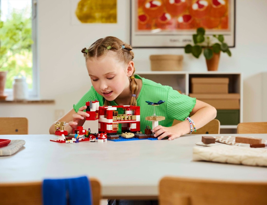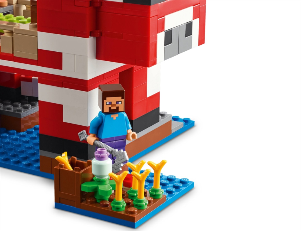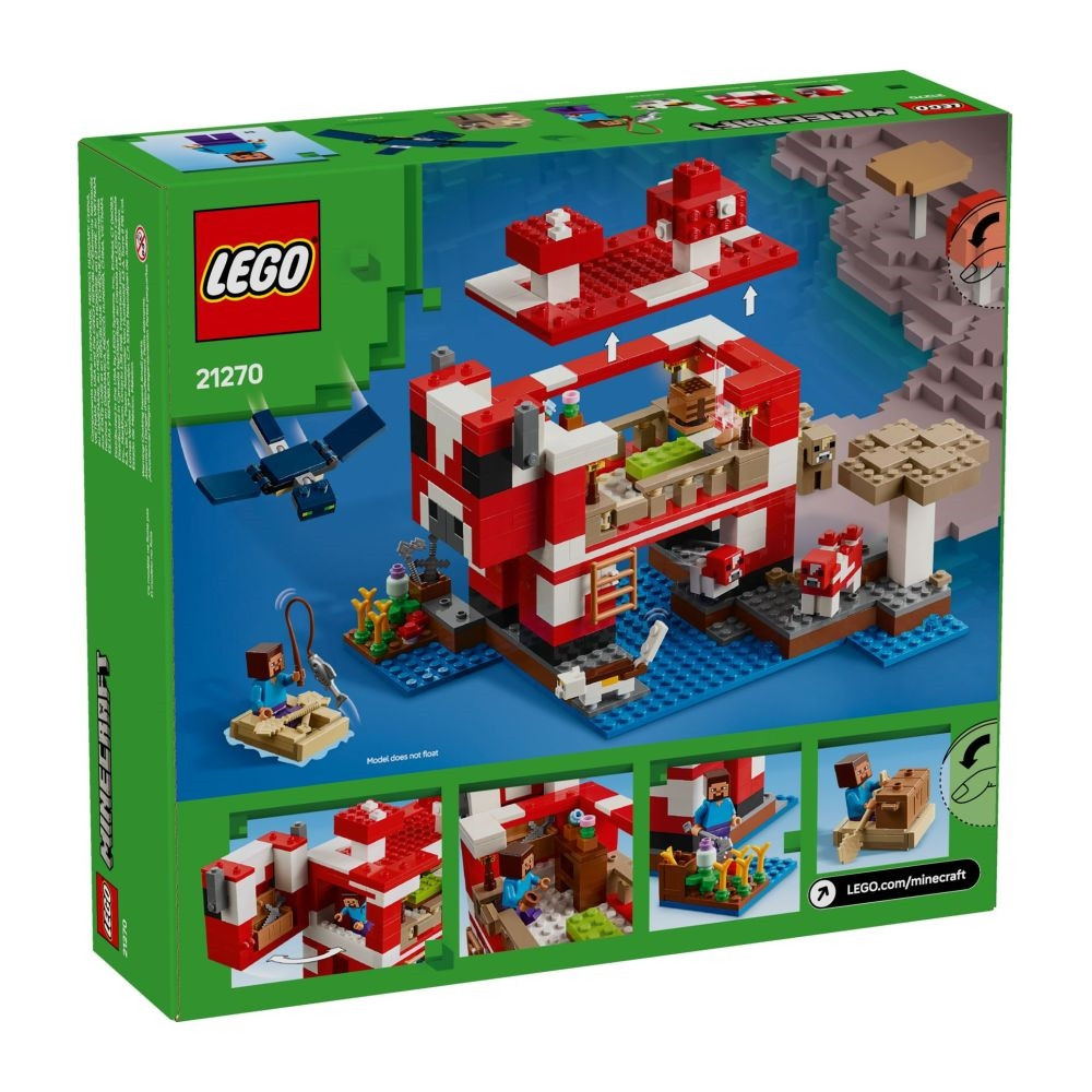 A múúmbaerdőben játszódó LEGO Minecraft házépítő játék a híres figurát, Steve-et, valamint egy vörös múúmbát, egy vörös bébimúúmbát, egy barna múúmbát, egy calico macskát és egy gonosz repülő fantomot tartalmaz. A játékkészlet telis-tele van a videójátékból ismert elemekkel, például egy kis farmmal, ahol búzát, gombát és kancsóka virágot nevelhetsz, és egy komposztálót is találsz. A kiegészítők közt horgászbotot, tőkehalat, kapát, alvilágérc kardot, tálat, evezőkkel felszerelt csónakot, kemencét, barkácsasztalt, könyvespolcot, kenyeret és ágyat fedezhetsz fel. A LEGO Builder appal még vidámabb lesz a játék, hiszen a gyerekek az eszközeiken 3D-ben felnagyíthatják és elforgathatják a modelleket.
