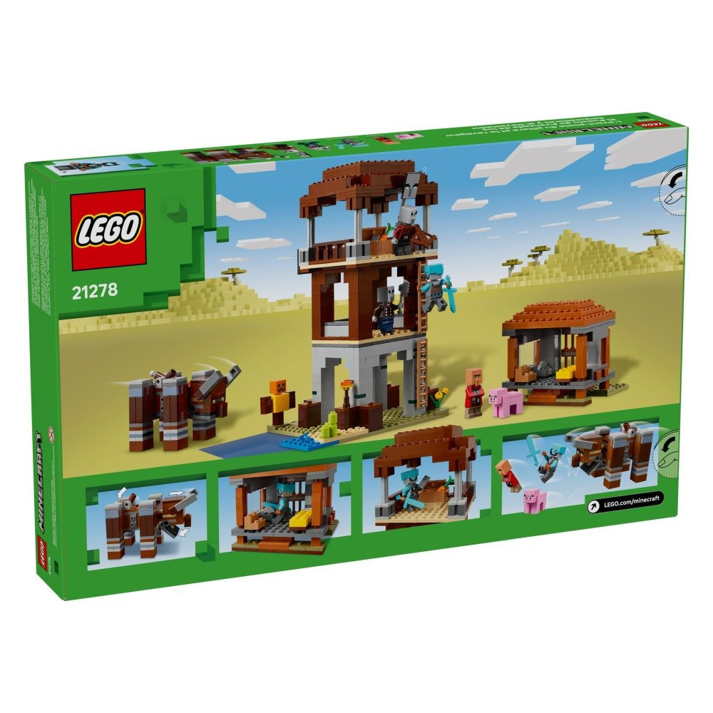 Készülj a leszámolásra a szavannabiomban! A Raid Captain felemeli nyílpuskáját, a fejszét lengető Bosszúálló pedig a rombolóra támad, aki kinyitja hatalmas állkapcsát, és mindent elsöpör! Segíts a falusinak megvédeni az otthonát, majd mássz fel az őrtoronyra, hogy megszerezd a zsákmányt és a magasból figyeld a csatát. Minden Minecraft® készségedre szükség lesz, hogy megvédd a falut a pusztulástól!