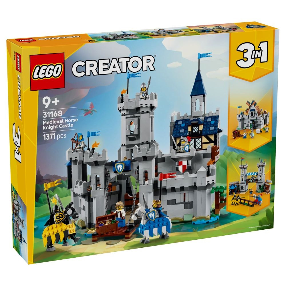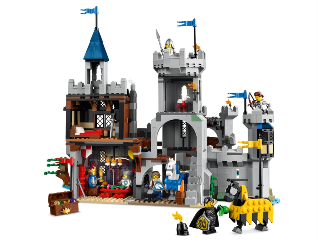 Utazz vissza az időben, és élj át lélegzetelállító kalandokat a Középkori lovagi várban! Kelj át a felvonóhídon, majd fedezd fel a király hálószobáját, a nagytermet és az istállókat, végül pattanj lóhátra, és védd meg a várat! Még több középkori akció vár, ha átépíted egy lovagi tornát megjelenítő szetté, vagy egy szélmalommal díszített középkori várossá. A döntés a tiéd ezzel a 3 az 1-ben szettel.
