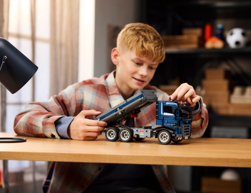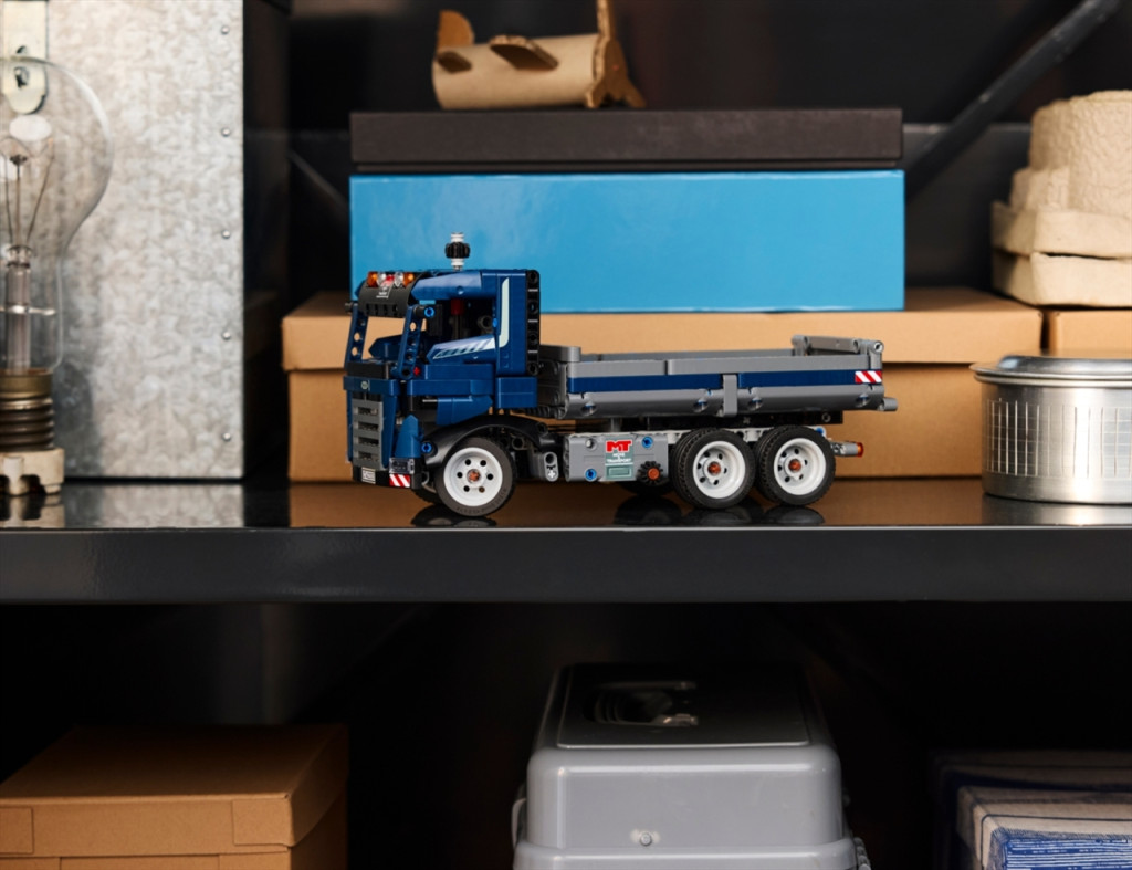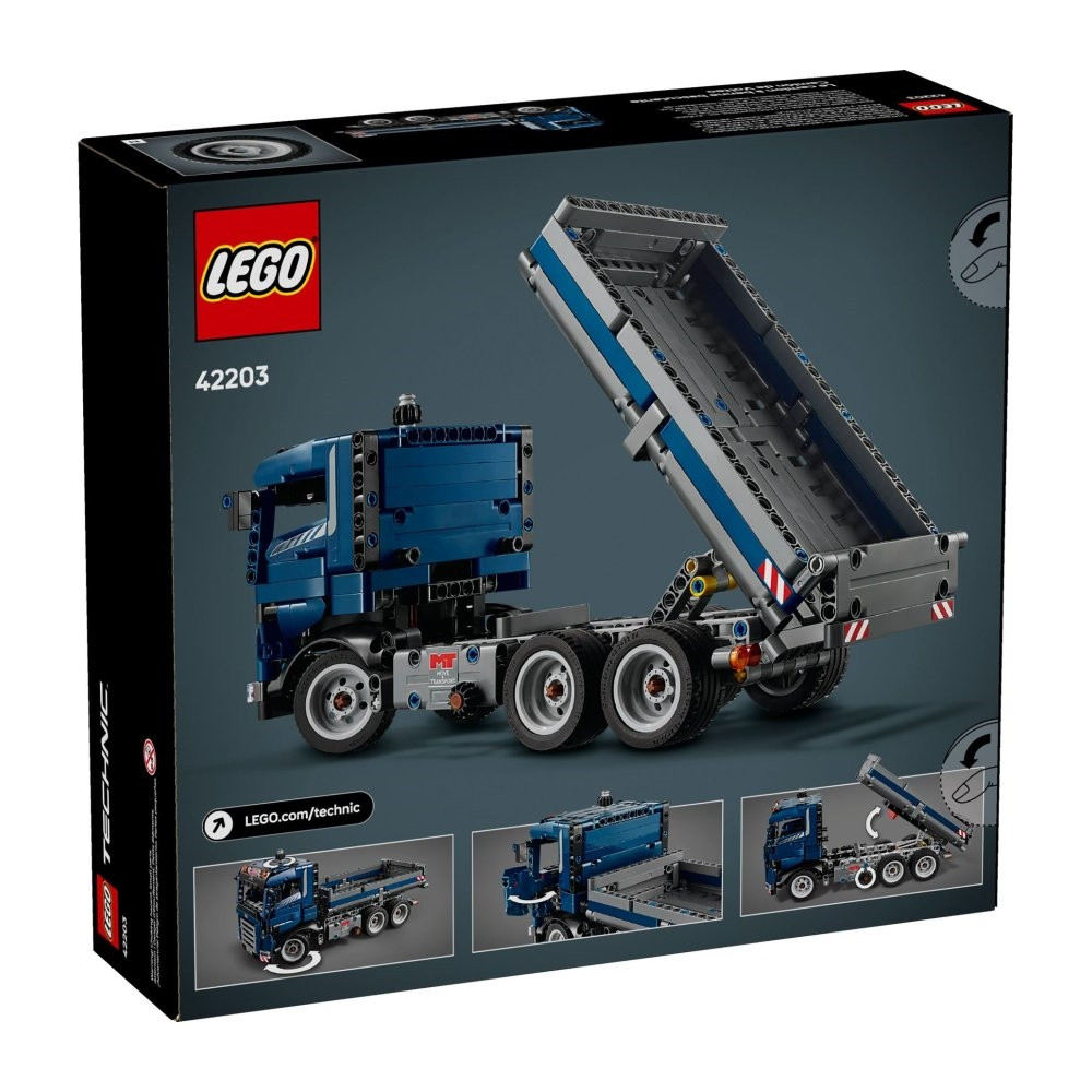 Sosem áll meg a munka az építési területen a LEGO® Technic Billenőplatós teherautóval! Kormányozd a teherautót a megfelelő pozícióba! Fordítsd el a teherautó oldalán lévő gombot, és döntsd meg a platót! Nyisd ki az ajtót, nézd meg a vezetőülést, és irányítsd ezt a keményen dolgozó munkagépet az építési területen következő feladathoz!