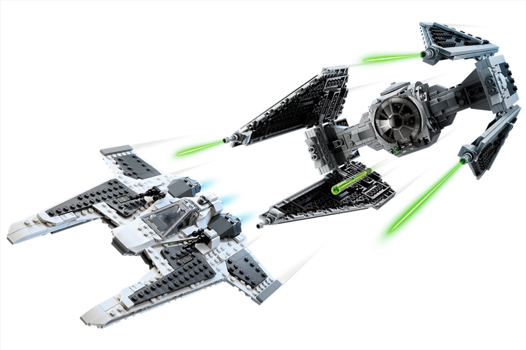 Kezdődjön a hajsza! A Mandalóri flottaparancsnok az új, áramvonalas Mandalóri Fang vadászgép vezérlőjénél van, miközben egy klasszikus TIE elfogóvadász nyomában van. Aktiváld a rugós kilövőket, és kerüld ki a TIE elfogóvadász lövéseit! Csatlakozz a harchoz A Mandalórival és klassz sötétkardjával! Vajon ki fog győzedelmeskedni? Csak rajtad múlik!