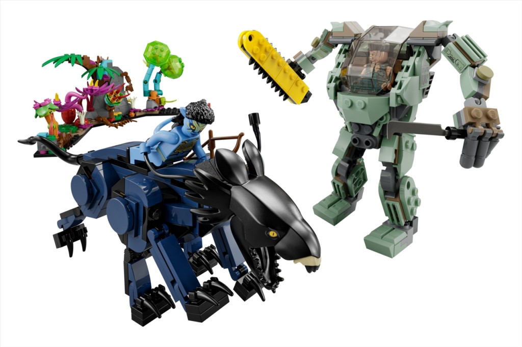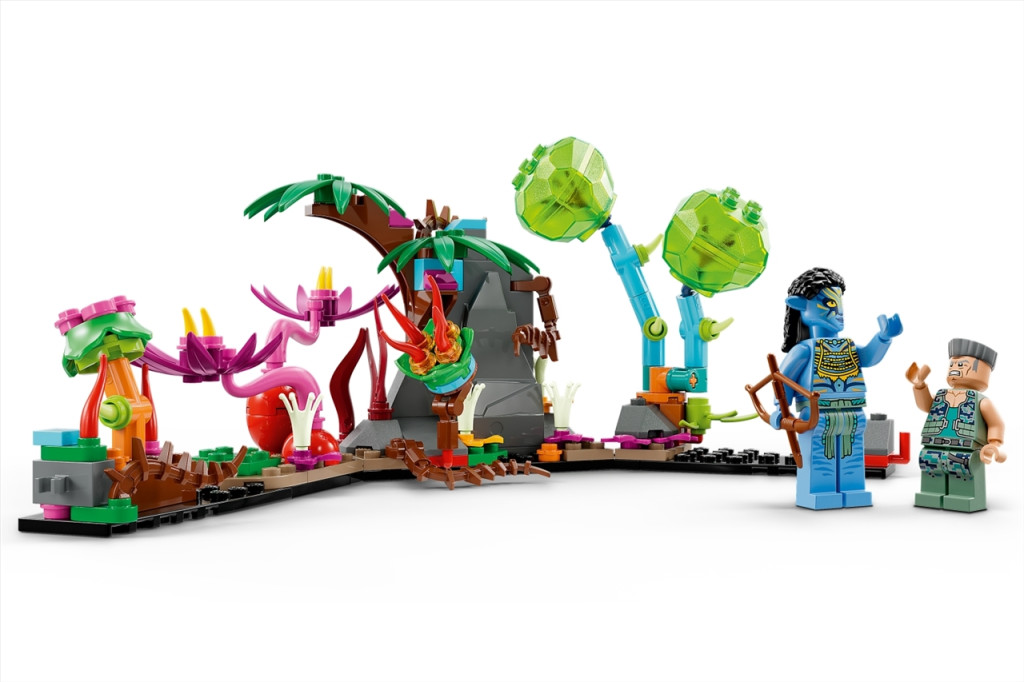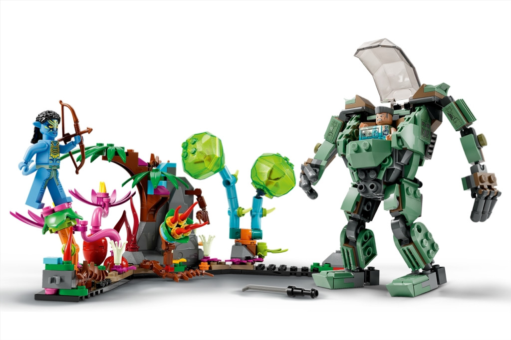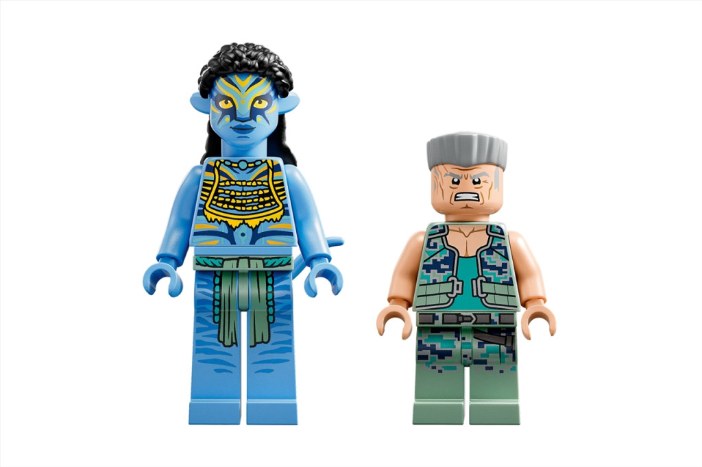Ez a LEGO® készlet Neytiri és Miles Quaritch ezredes minifiguráit, egy megépíthető AMP Suit és Thanator figurát, valamint egy megépíthető, dzsungelbeli helyszínt is tartalmaz sötétben világító elemekkel.