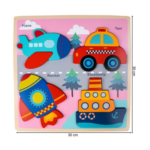 Fa készségfejlesztő puzzle, járművek