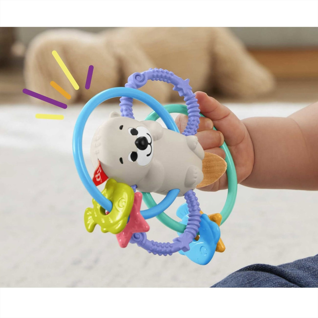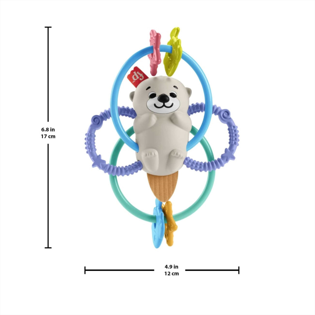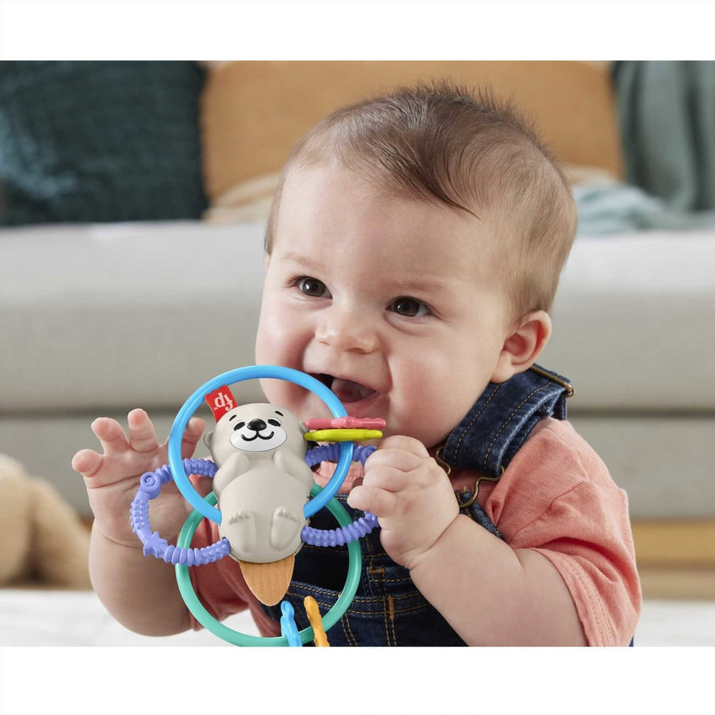 A babák imádnak csörgőzni és rágcsálni, a Fisher-Price Sensimals Vidrás rágóka pedig imádja, ha rázzák és rágcsálják. Csak kezébe veszi a kicsi és kezdődhet is a csörgő rágóka-móka. A játék rugalmas gyűrűit a kis kezek könnyen megragadhatják, megrázhatják és csavargathatják, így a vidra hosszú időre lefoglalhatja a figyelmüket. A BPA-mentes, mintás fogógyűrűk, a halak és csillagok rágcsálása segít a fogzáskor, a rázással pedig vidám hangokkal jutalmazzák a baba ügyességét észrevétlenül fejlesztve finommotoros készségét, nagymozgásait, érzékelését és a szem-kéz koordinációt.