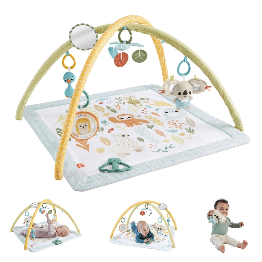 Akár háton, akár hason játszik a baba, a Fisher-Price Sensimals játszószőnyeg tökéletes hely a szórakozáshoz, a növekedéshez és a fejlődéshez. A puha, kedves állatokkal díszített, élénk színű és mosógépben mosható játszószőnyeg rengeteg felfedezni-, tapogatni- és ütögetnivalót tartogat. A 6 érzékfejlesztő játék, a plüss koala, a liba rázóka, gyűrnivaló süni, a pörgő, és a tükör és a BPA mentes pillangó rágóka mind áthelyezhető ezzel is késztetve a kicsiket a mozgásra és fejlődésre. A fejlesztés is lehet játék! Miközben játszik és játék közben feltámaszkodik a baba, erősödnek a nyak és a törzs izmai. Az élénk színek, feltűnő minták és a kis tükör nagyban hozzájárul a vizuális érzékelés fejlődéséhez. Az izgalmas játékok ösztönzik a kisgyermekeket, hogy elérjék, megmarkolják és megszerezzék azokat, így fejlődnek a finommotoros készségeik, a kézügyességük és a kéz-szem koordináció.