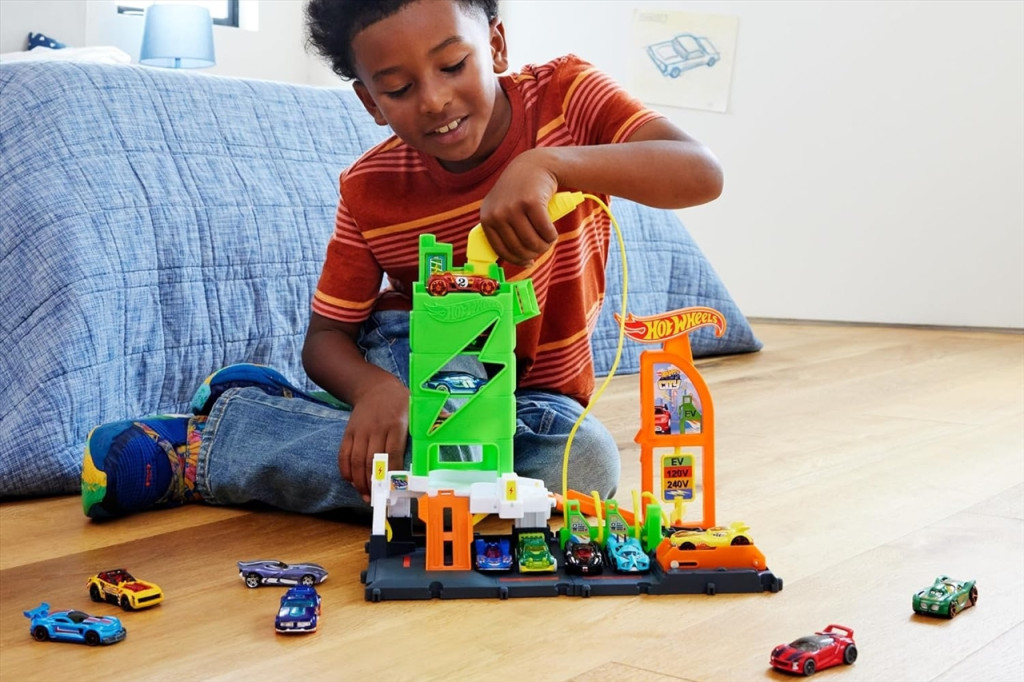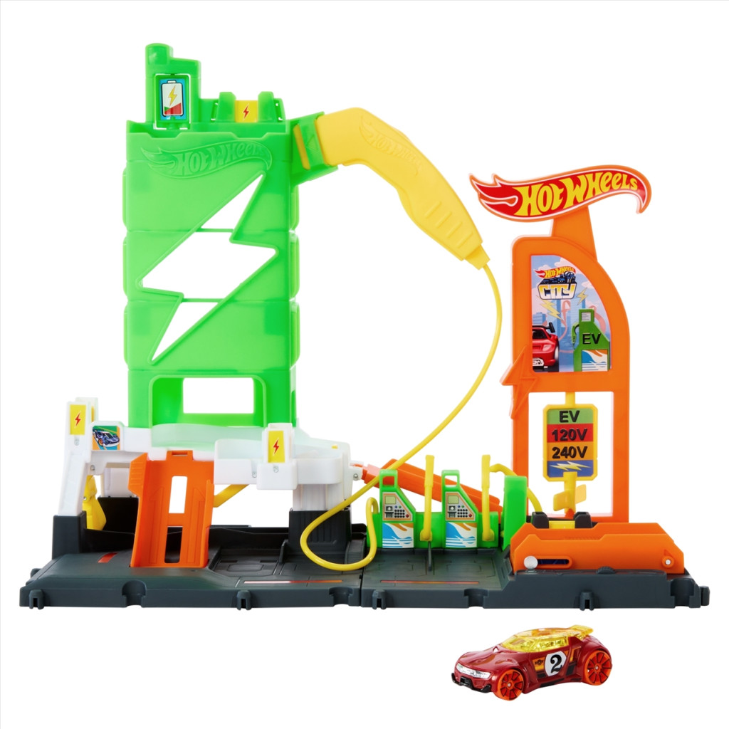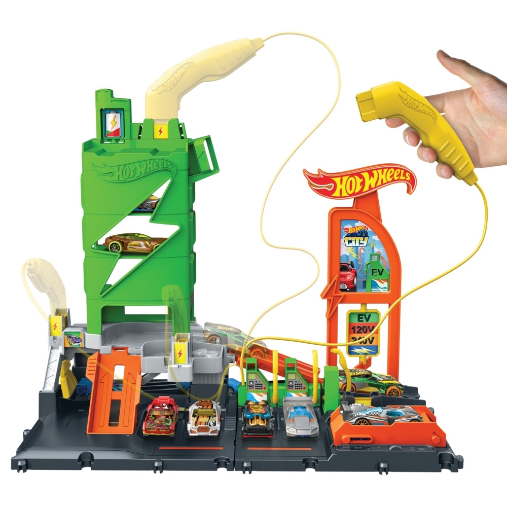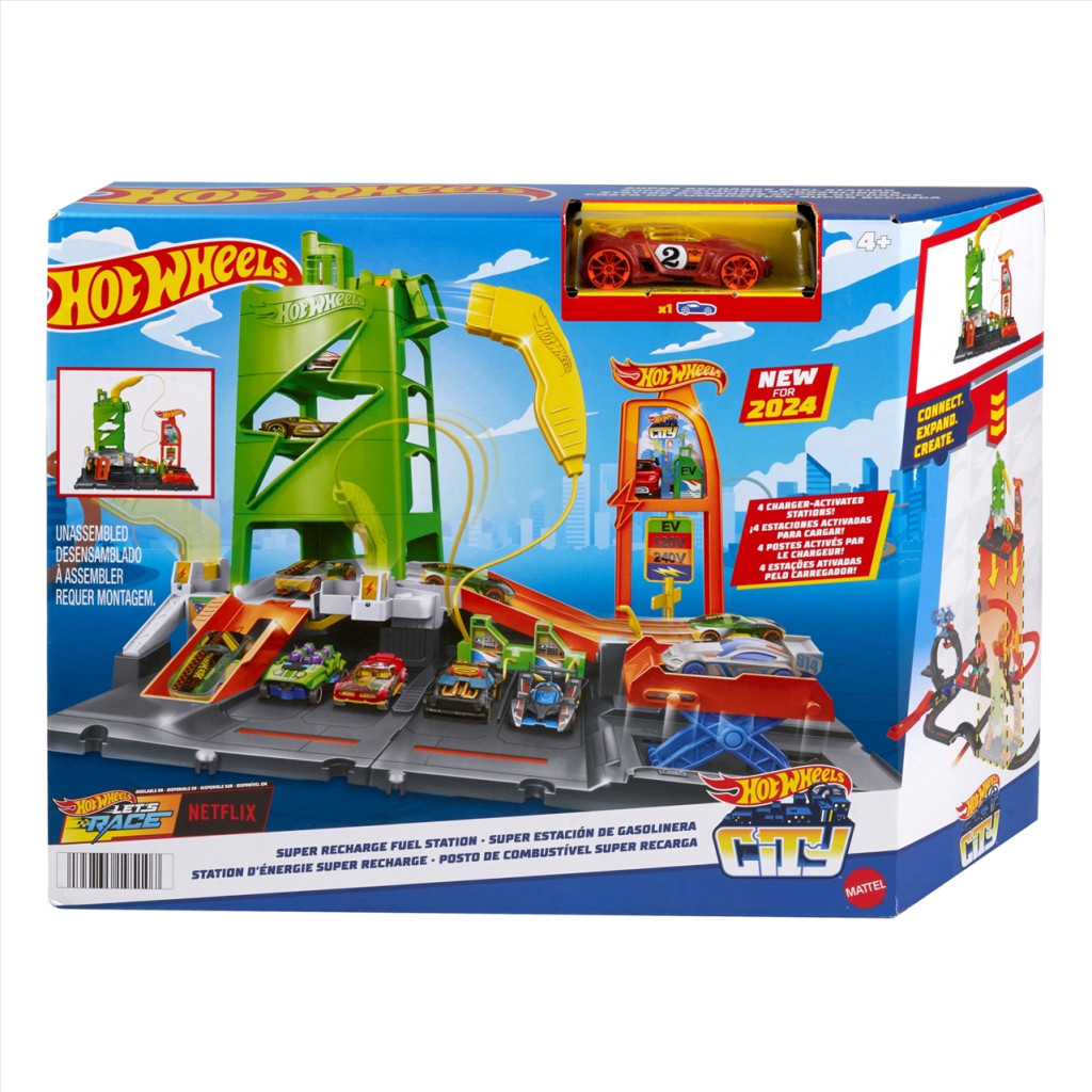 A Hot Wheels Szuper Töltőállomás pályaszett teljes gázzal beindíthatja a gyerekek fantáziáját és az izgalmas kalandokat. A töltőfej segítségével négy különböző állomás aktiválható. A készletben van torony, emelő, rámpa, töltőállomás és egy 1:64 méretű kisautó is. A pályaszett összeköthető más Hot Wheels vagy Matchbox készletekkel, így a gyerekek saját világának a része lehet. A Hot Wheels játékok fejlesztik a gyerekek kreativitását és ügyességét. A történeteknek csak a képzeletük szabhat határt. Minden készlet külön kapható, elérhetőségük változhat. A színek és a díszítések eltérhetnek.