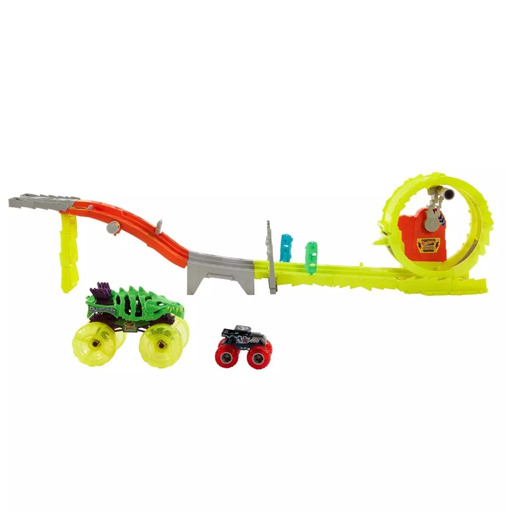 A szörnyetegek világában a méret a lényeg, vagy mégsem? A Hot Wheels Monster Trucks Power Smasher hajsza pályaszettel kiderülhet. A készletben egy 1:64 méretű Bone Shaker járgányt egy nagyobb méretű Skelesaurus szörnyeteg üldözi keresztül a pályaszetten. A véletlen végkimentel izgalma minden indításnál érezhető. Ha Bone Shaker átjut a hurkon megmenekül és üldözője beleragad a mocsárba, de ha Skelesaurus utoléri prédáját lezúzza és kiüti. A készlet két további roncsautót is tartalmaz az extra zúzós élményhez.