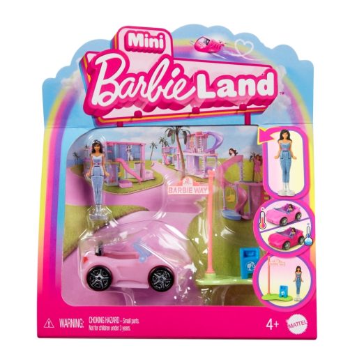 A Barbie MiniLand Jármű - Autó játékszettel a gyerekek egy szuper kabrióval indulhatnak csodás kalandok felé képzeletük útjain, a deréknál hajlítható baba bepattanhat a szuper, színváltós járgányba és irány Barbie MiniLand. A színváltás jéghideg és meleg víz hatására bármikor megismételhető és sosem lehet megunni. A készlet az autót, egy babát és egy kiegészítőt tartalmaz.