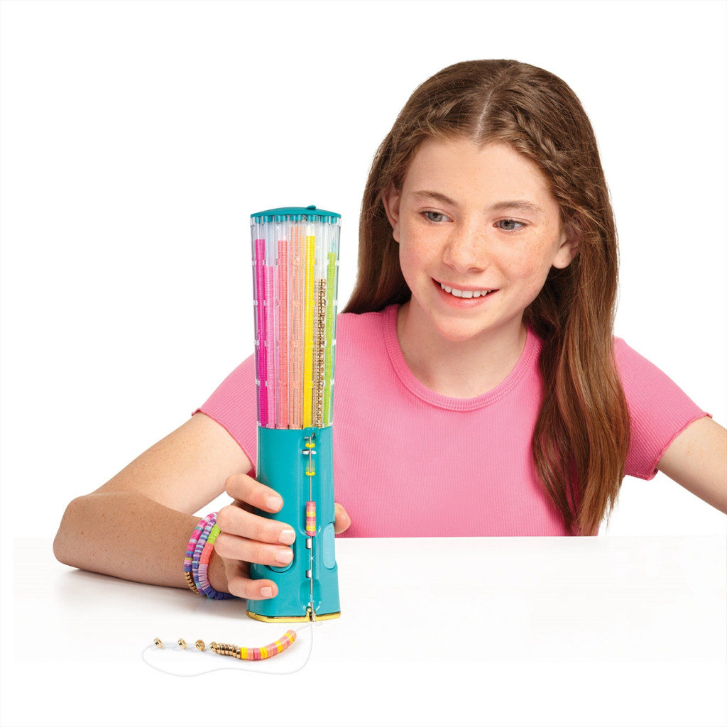 Hogy mi teszi tökéletessé a Heishi gyöngy ékszereket? A gyöngyök lapos korong alakja csak a recept egyik összetevője, hiszen az egyedi dizájnt és hangulatot a színek akár véletlenszerű keverése teszi lehetővé. A Make It Real Swift Clicks Heishi gyöngyfűző segít neked az egyedi karkötők, láncok vagy más ékszerek elkészítésében. Csak fordítsd az adagolót úgy, hogy a kívánt színű gyöngy kerüljön a fűzőrúdra, majd nyomd meg a gombot, hogy a gyöngy a fonálra kerüljön. Minden kattintással egy újabb gyöngyöt vihetsz fel. Ismételd vagy kombináld a színeket tetszés szerint.