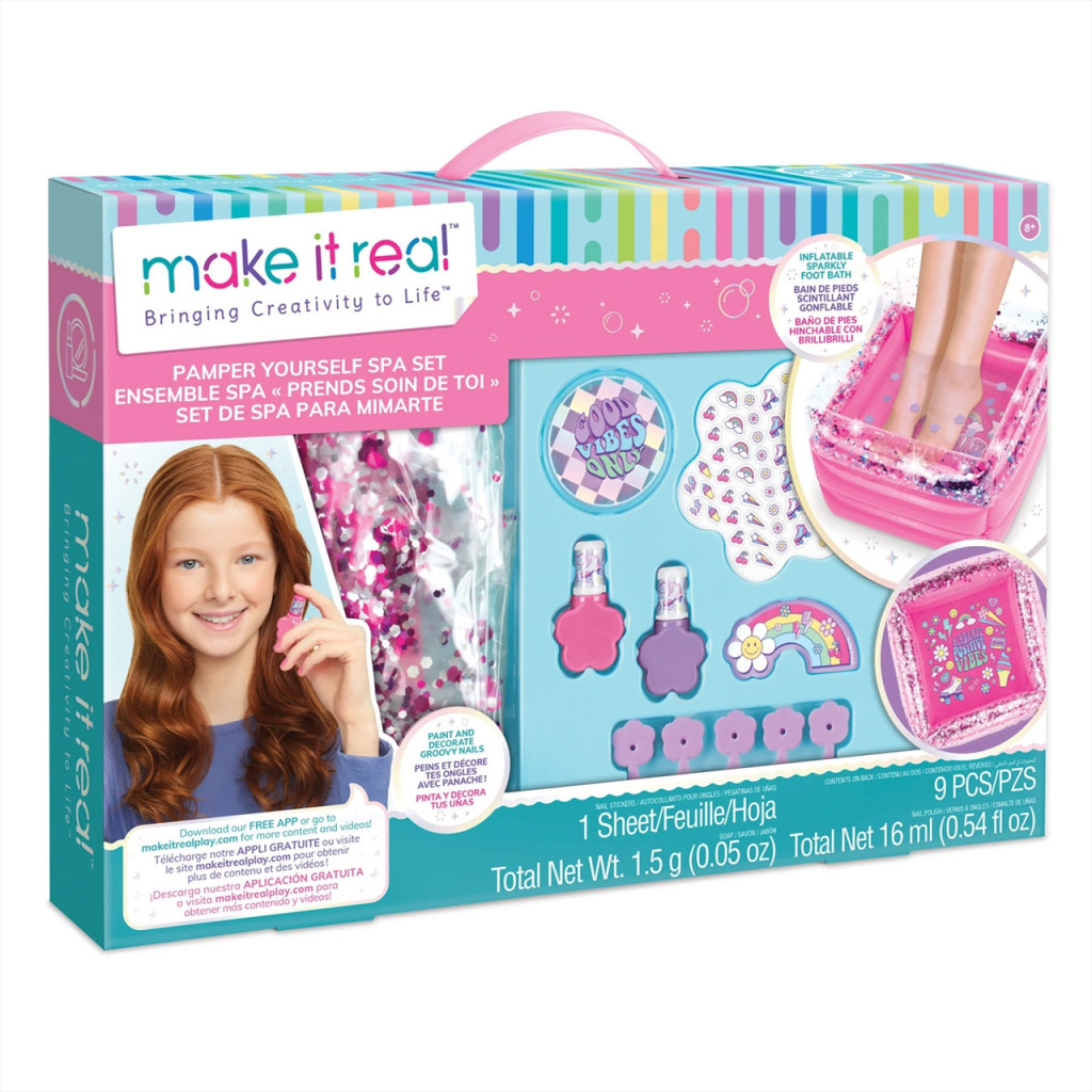 Egy csajos pizsamaparti vagy csak sima kényeztető délután elengedhetetlen kelléke ez a Make it real láb spa készlet. Kényeztessétek lábaitokat egy kis meleg vizes fürdőben azután pedig készítsétek el a tökéletes manikürt a körömlakkok és körömmatricák segítségével.