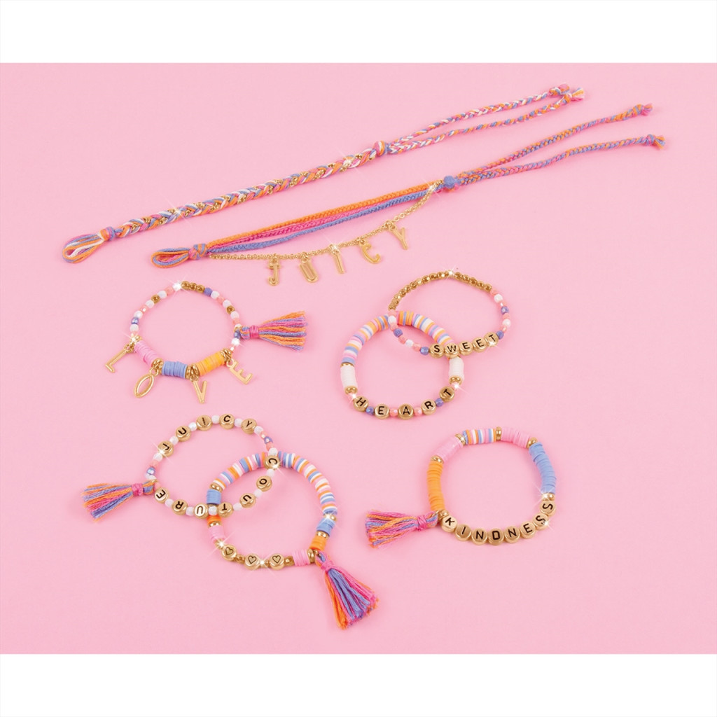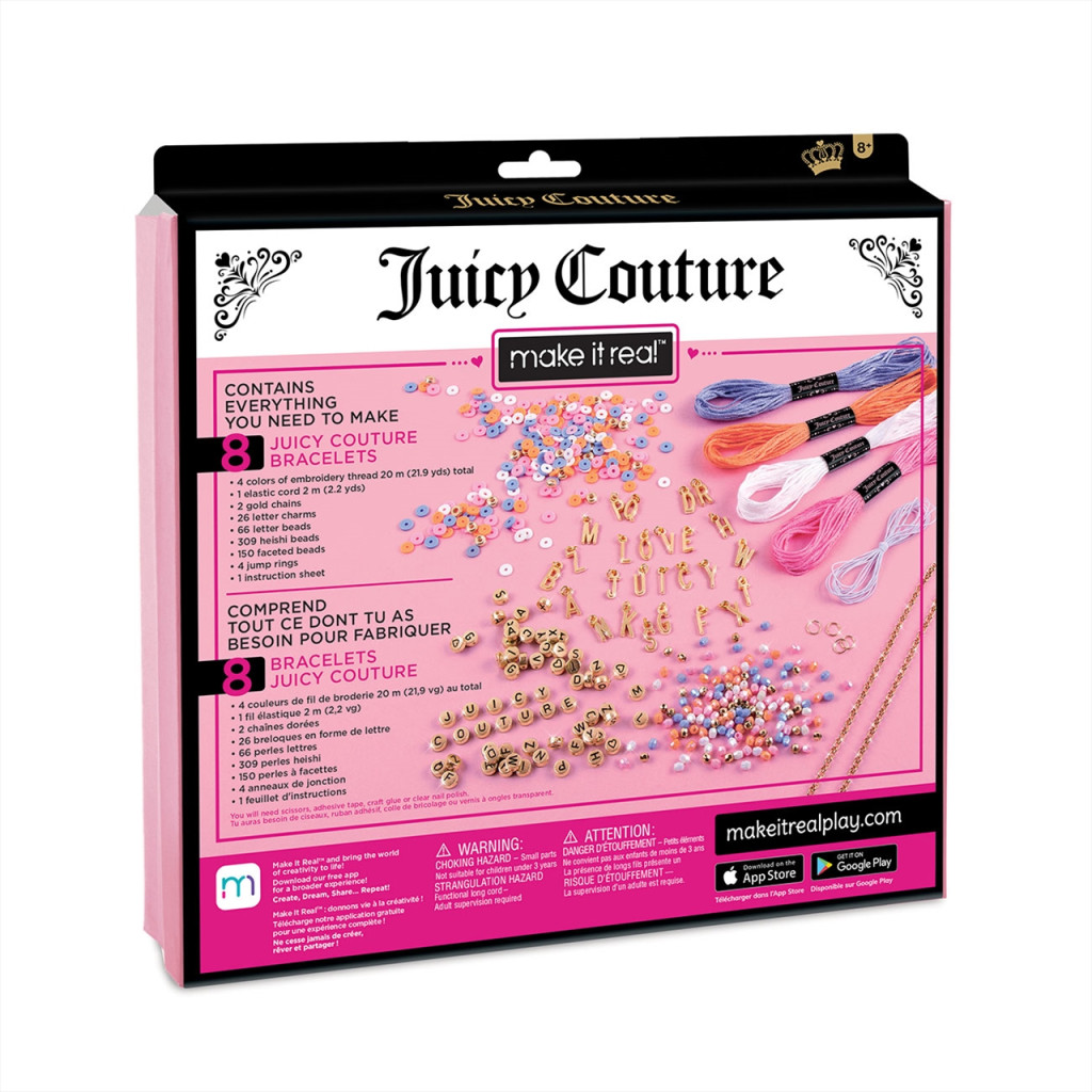 Ez a készlet mindent tartalmaz, amire szükséged van ahhoz, hogy elkészítsd a saját Juicy Couture ékszereidet. Készíts különleges, lenyűgöző darabokat heishi gyöngyök, betűgyöngyök, medálok, cérna és elasztikus zsinór keverékéből. Annyira szépek lesznek, hogy mindenki azt fogja hinni, hogy egy csúcskategóriás butikból származnak!
