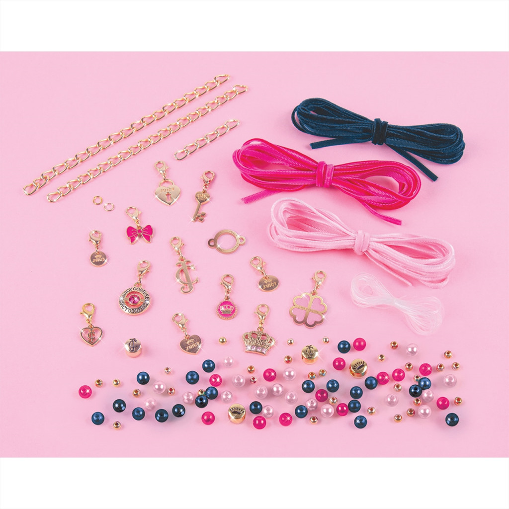 Készíts divatos karkötőt ezzel a szuper Juicy Couture készlettel, ami telis- tele van gyöngyökkel, medálokkal, amik mind egyedivé tehetik az ékszereidet.