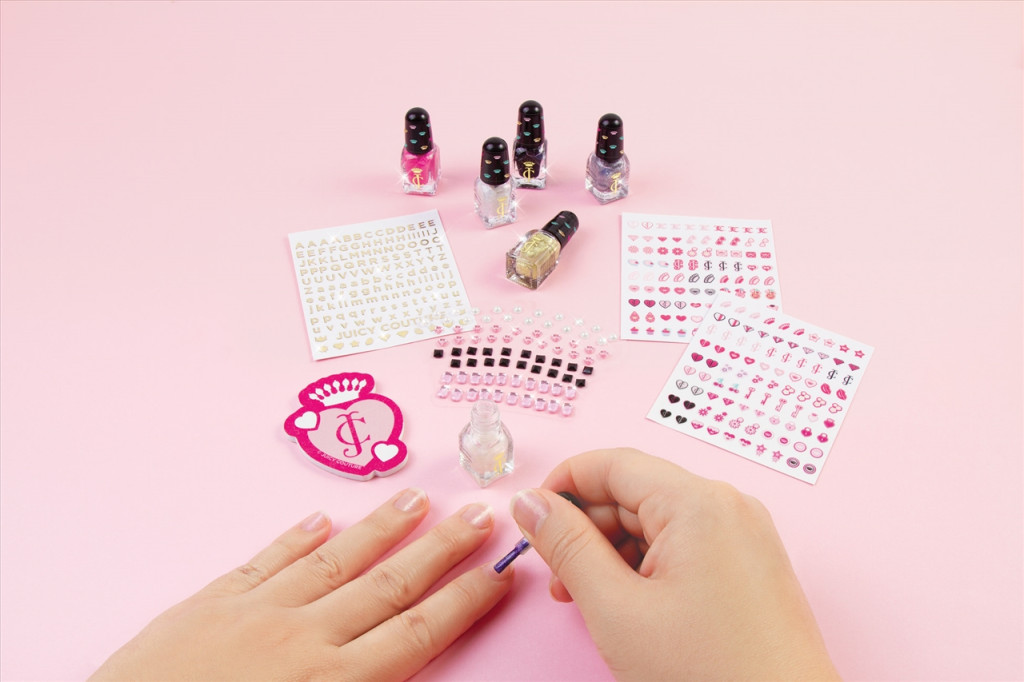 Hogy mi passzol tökéletesen a ragyogó Juicy Couture ékszereidhez? Szikrázó Juicy Couture körmök, amiket ezzel a Make It Real manikűr szettel könnyen elkészíthetsz és applikálhatsz! Légy te a stílus királynője, és dekoráld a körmeidet a készletben lévő 6 ragyogó árnyalat egyikével. Ha ezzel megvagy, válassz a megannyi Juicy Couture stílusú körömmatrica közül, és élvezd az igazi luxus megjelenést! Nem vagy elégedett a formákkal? A csomagban egy körömreszelőt is találsz, amivel megigazíthatod a körmeid alakját. A készletben lévő körömlakkok vízbázisúak, használatuk tesztelt, gyermekek számára is biztonságos.
