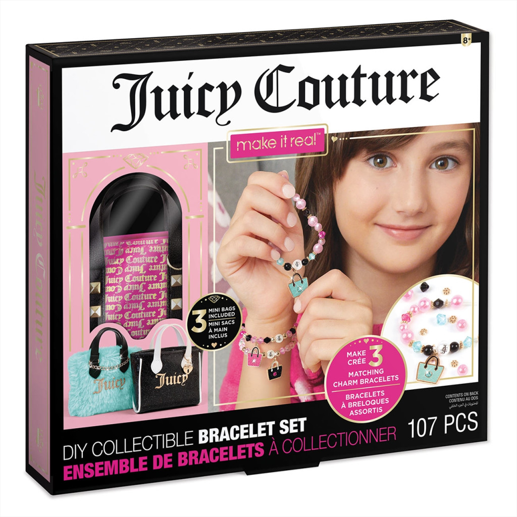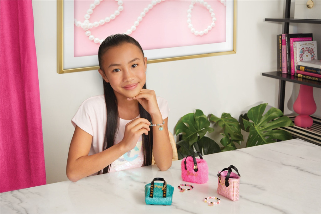 Minden apró, színes mini kézitáska egy komplett karkötőkészítő szettet rejt, amellyel a gyerekek saját Juicy Couture ihlette charm karkötőt alkothatnak. A készletben található gyöngyök, láncok és bájos charmok segítségével könnyedén elkészíthetnek egy mutatós, összehangolt kiegészítőt – akár a táskához illően, akár a saját outfitjükhöz párosítva.