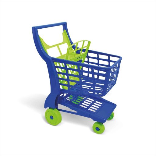 Játék bevásárlókocsi, mint egy igazi szupermarketben. Négy puha műanyag kerékkel rendelkezik.