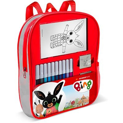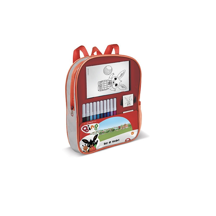 Ez a Bing nyuszis hátizsák egy praktikus csomag, hiszen a gyerekek könnyen magukkal vihetik a kreatív szettet. A szett színes filceket, nyomdát és színezőt is tartalmaz.