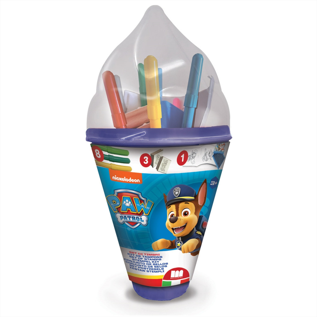 Ez a Mancs Őrjáratos fagyitölcsér három nyomdát, egy nyomdapárnát és nyolc színes filcet tartalmaz a mese meghatározó színárnyalataival.