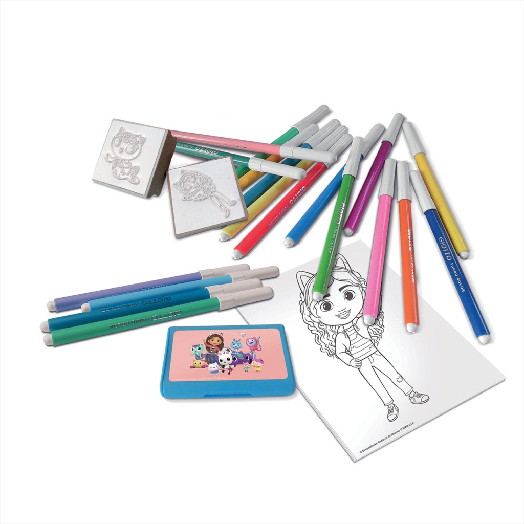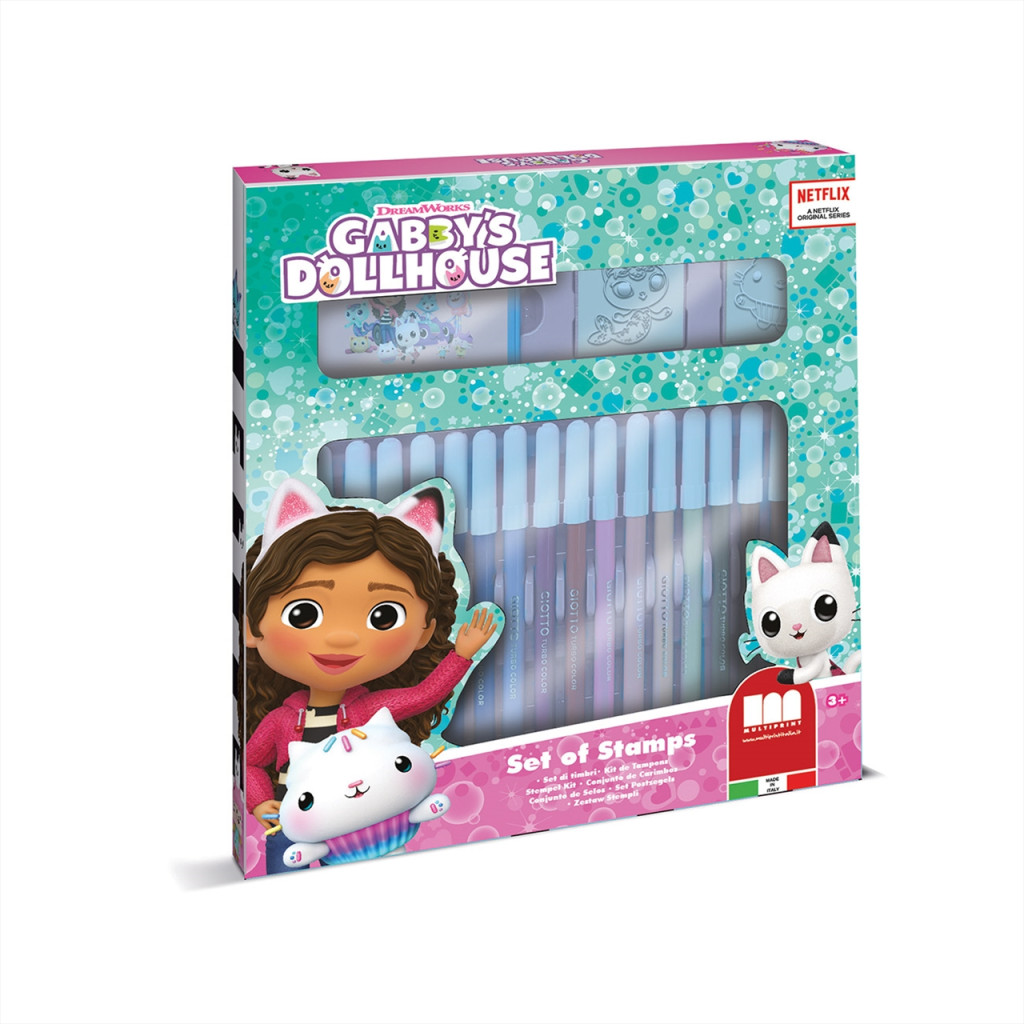 Ez a Gabi Babaháza készlet két darab nyomdát, egy nyomdapárnát és 16 színes filcet tartalmaz a mese meghatározó színárnyalataival.