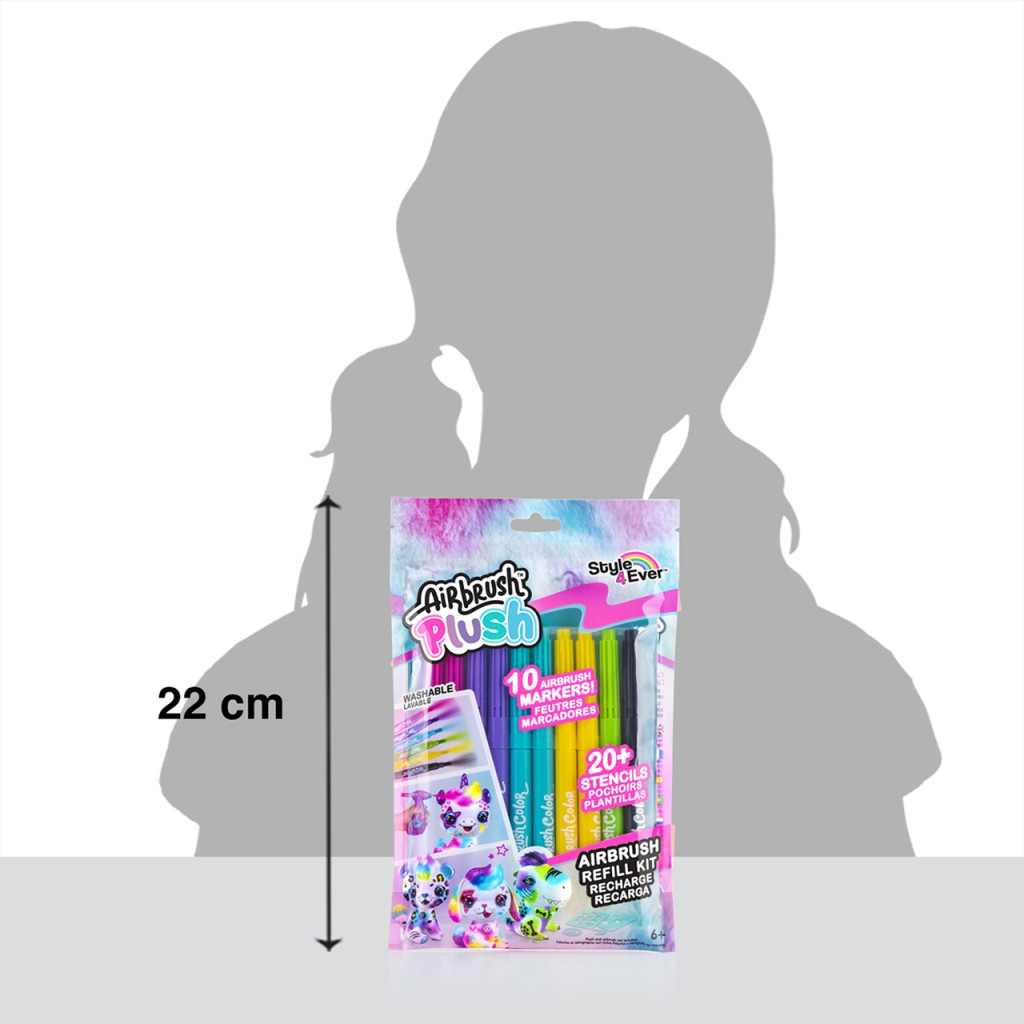 10 db-os újratöltő filckészlet Airbrush színezhető plüssökhez, mely kompatibilis a szettek festékszóró pisztolyával. A csomag tartalma: 2 db magenta filc, 2 db lila filc, 2 db kélk filc, 2 db sárga filc, 1 db zöld filc, 1 db fekete filc