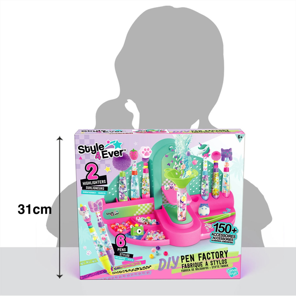 A Style 4 Ever DIY tollkészítő gyárral a gyerekek egyedi írószereket készíthetnek. A munkaállomáson minden díszítőelemnek megvan a maga helye, hogy átlátható és rendezett legyen minden kellék, és tényleg csak az alkotásra kelljen figyelni.
