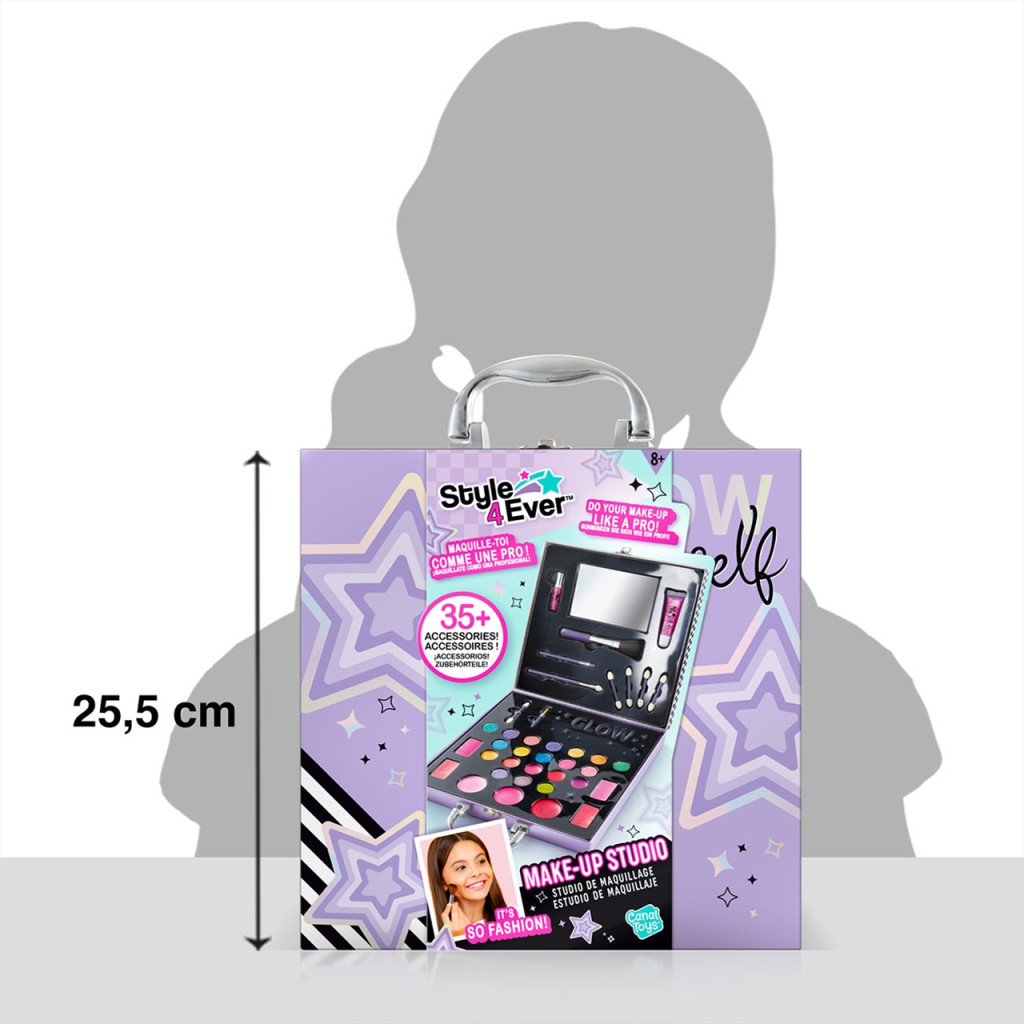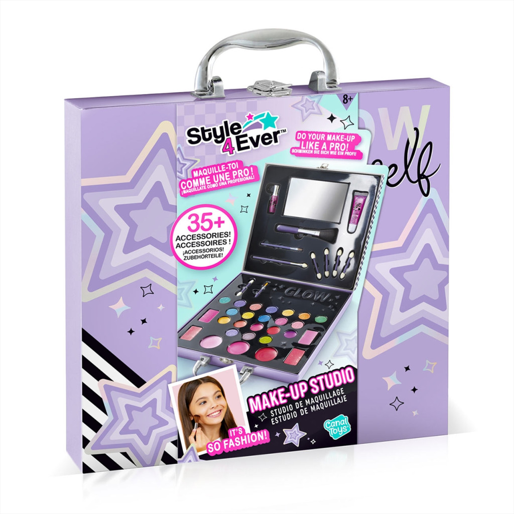 A Style 4 Ever Make-up Stúdió egy igazi profi készlet, amely több mint 35 sminkkiegészítőt tartalmaz – minden benne van, ami a nappali, esti vagy akár extrább sminkek elkészítéséhez kell. A hordozható sminkdoboz valódi tükörrel, praktikus fogantyúval és masszív fém zárral rendelkezik, így könnyedén magaddal viheted bárhová.