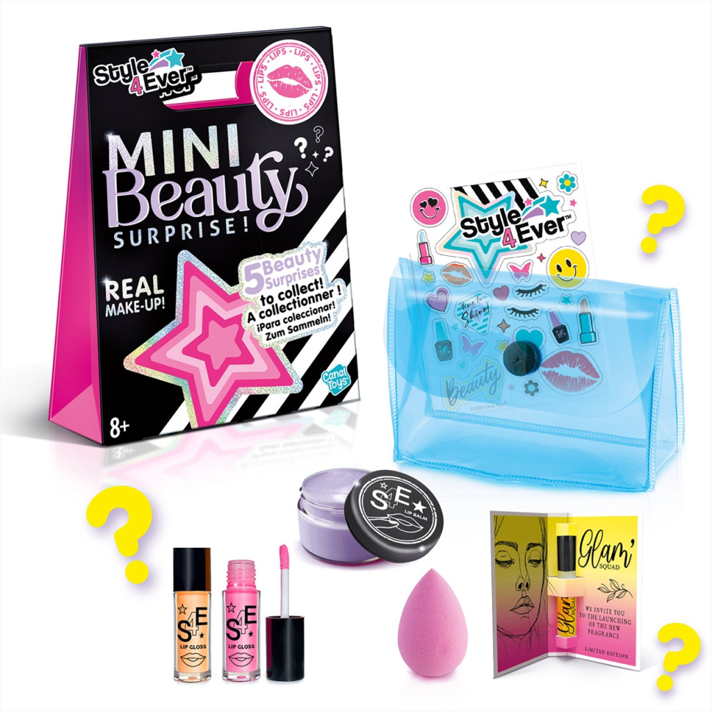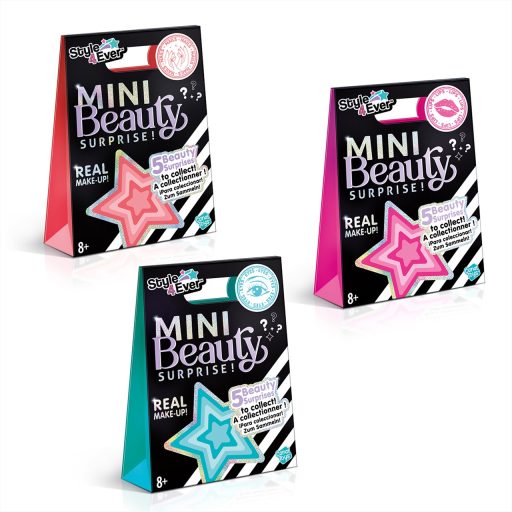 Ideje felfedezni a divatot, és megtalálni a saját stílusodat! Ezek a Style 4 Ever mini sminkkészletek szuper muníciót biztosítanak az első make-up elkészítéséhez. Mindegyik csomag 5 meglepetést tartalmaz, melyek között szemfestékpalettát, ecsetet, körömlakkokat, ajakbalzsamokat találsz – ráadásul mindegyik csomag egy menő áttetsző kis táskával érkezik a praktikus tároláshoz, hogy bárhová magaddal tud vinni őket a smink megigazításához. A szetteket 8 éves kortól ajánljuk.