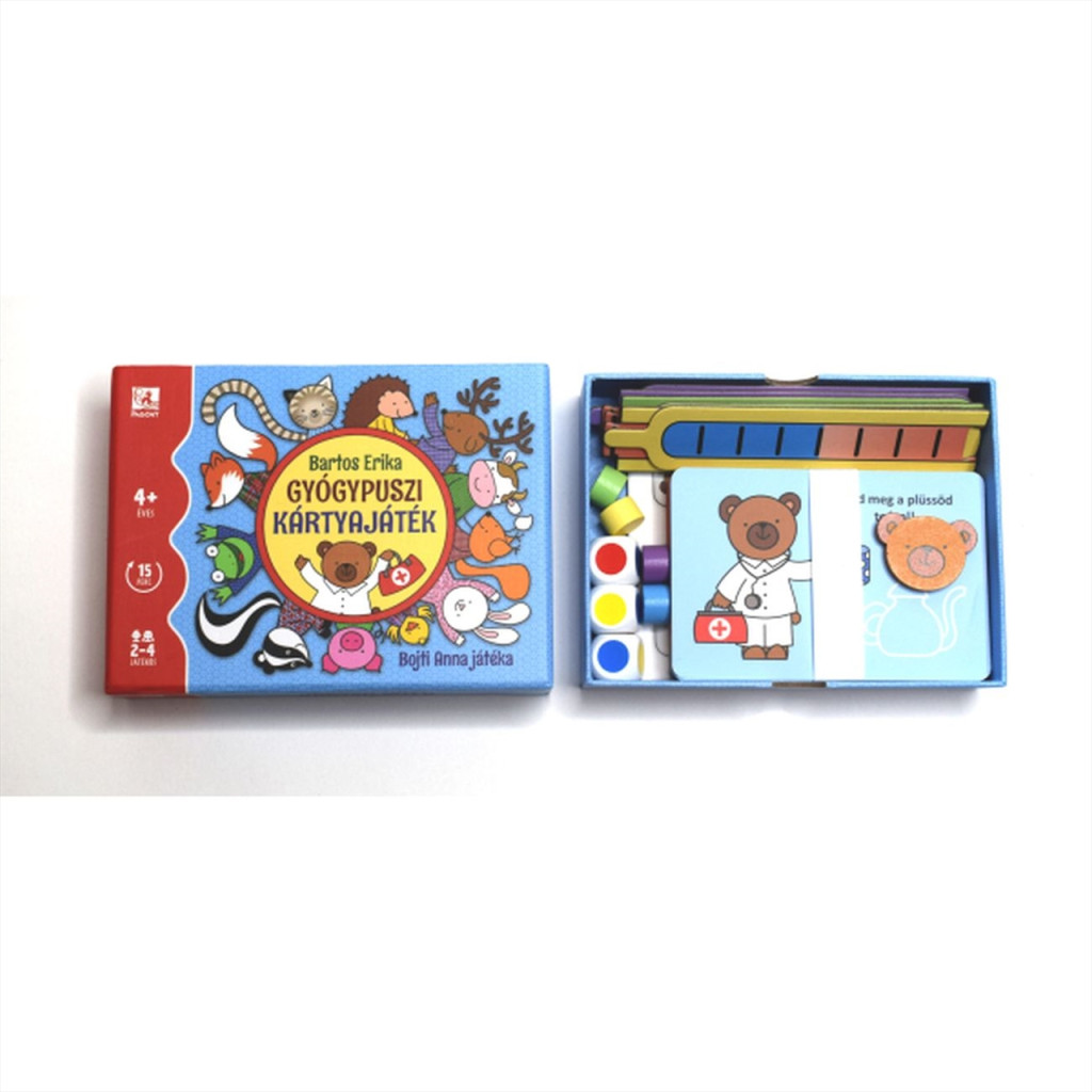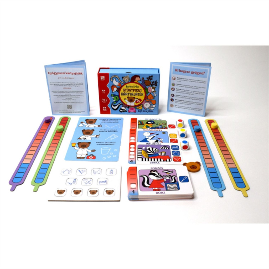 Ajjaj! Megfájdult Béka torka! Náthás lett Mókuska, elesett Egérke. Siess, segíts a kis állatoknak, gyógyítsd meg őket! Nem kell mást tenned, csak dobnod a színkockákkal, és egy kis szerencsével és ügyességgel mindenki meg fog gyógyulni. Ha pedig nagy a baj, Brummbrumm doktor jön, és segít.