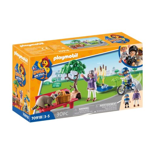 A Playmobil játékok használata közben nagyon jól fejlődik a gyerekek kreativitása. Exkluzív kiegészítőkkel, tartozékokkal és figurákkal tovább bővíthetők a játékszettek. A Playmobil – Duck on Call szettjei a játékgyártó egyik legújabb 2022-es témájára épülnek, melynek segítségével minden gyerek igazi hőssé válhat. Megismerkedhetnek a barátság, mások segítése, a csapatszellem és az önbizalom jelentésével. A Youtube-on elérhető új Playmobil mesesorozat a varázslatos Playmoville kisvárosban játszódik, a történet középpontjában pedig egyik ifjú lakója, Ducklas áll. A kisfiút mindenki ismeri a városkában, hiszen csínytevéseivel sok bosszúságot okoz az ottélőknek. Egy napon a titokzatos Mr. Hans megelégeli a fiú tiszteletlenségét és rosszalkodását és kacsává változtatja őt. Visszaváltoztatásának egyetlen feltétele van: megtanulni az önzetlen segítségnyújtást és a szívből jövő kedvességet. Ennek eléréshez mi lehetne jobb, mint csatlakozni olyan hétköznapi hősökhöz, mint Freddy tűzoltó, Polly rendőrnő és Mikey orvos? Izgalmas küldetéseikben, a vészhelyzetek megoldásában vehet részt gyermeke is, Ducklas kacsával együtt. A Playmobil - Duck on Call - Rendőrségi bevetés: rablóüldözés (70918) játékszett el indulhat az újabb mentőakció. Playmoville kisvárosban nem lehet unatkozni, mindig történik valami a lakókkal. Egy idős néni épp a parkon át sétál hazafelé, teli bevásárlókosarával a kezében. Kicsit megáll megpihenni a kis tó partján, a kosarát pedig leteszi egy közeli padra. Mialatt gyönyörködik a tavon úszkáló vadkacsában, egy mosómedve oson a padon hagyott kosarához és próbál kicsenni abból valami finomságot magának. Még szerencse, hogy Polly, a rendőrnő épp a parkon át járőrözik kerékpárjával és még időben el tudja kergetni a kis tolvajt, amiért a néni nagyon hálás neki. Meg is kínálja a segítségért cserébe egy finom, friss fánkkal Pollyt.