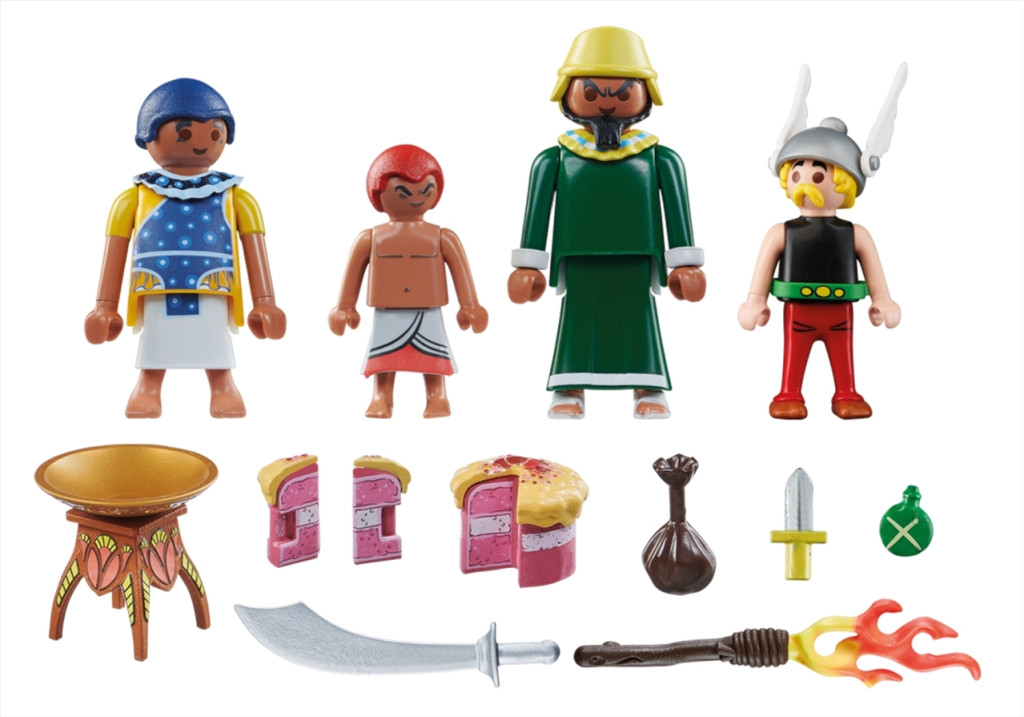 Kóstolót kérek! Királyi kóstoló mindent megkóstol mielőtt a királynő elé kerülne az étel ezzel védelmezték Egyiptom gyönyörű királynőjét. Nem hiábavaló az elővigyázatosság, mérgezett sütemény kerül a palotába, amivel a gallokat próbálják besározni. A gaztett mögött viszont Artifisz áll, Edifis versenytársa ezzel próbálta késleltetni az építkezést, hogy Kleopátra temploma ne készüljön el határidőre. A gallokat viszont nem olyan könnyű lépre csalni és átlátnak az álnok terven, egy kis varázsital az ellenszerük. Játszd újra az Asterix-képregények egyik leghíresebb jelenetét, és találj ki új kalandokat a játékkészlettel.