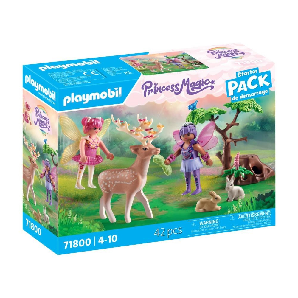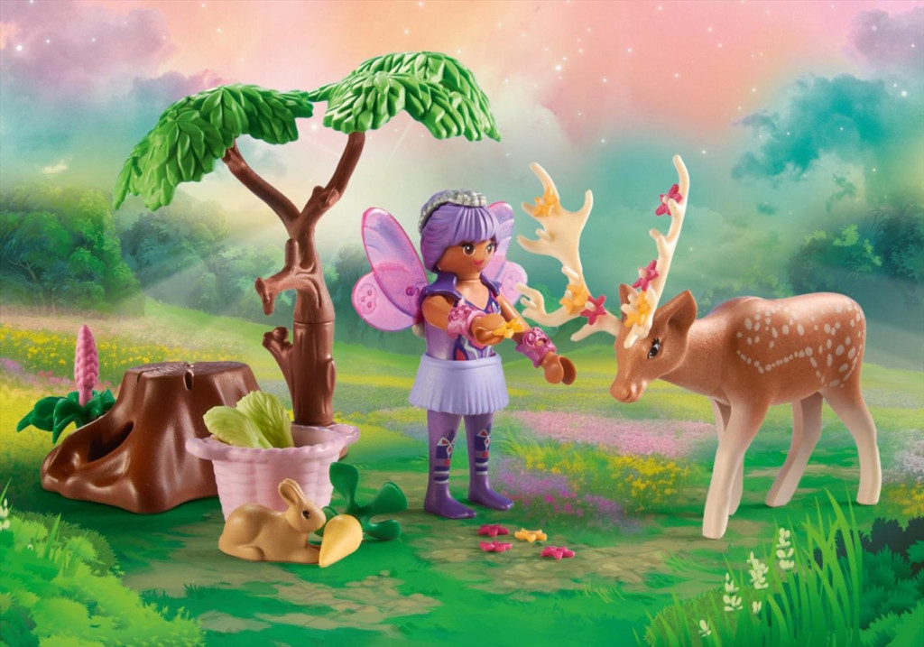A PLAYMOBIL® Starter Pack – Tündérkert erdei állatokkal szettben két kedves tündér gondoskodik az erdő lakóiról: a kíváncsi nyuszikról, a csivitelő madarakról és a büszke szarvasról, akinek agancsát színes virágok díszítik. A gyerekek elmerülhetnek a természet és a fantázia varázslatos világában.