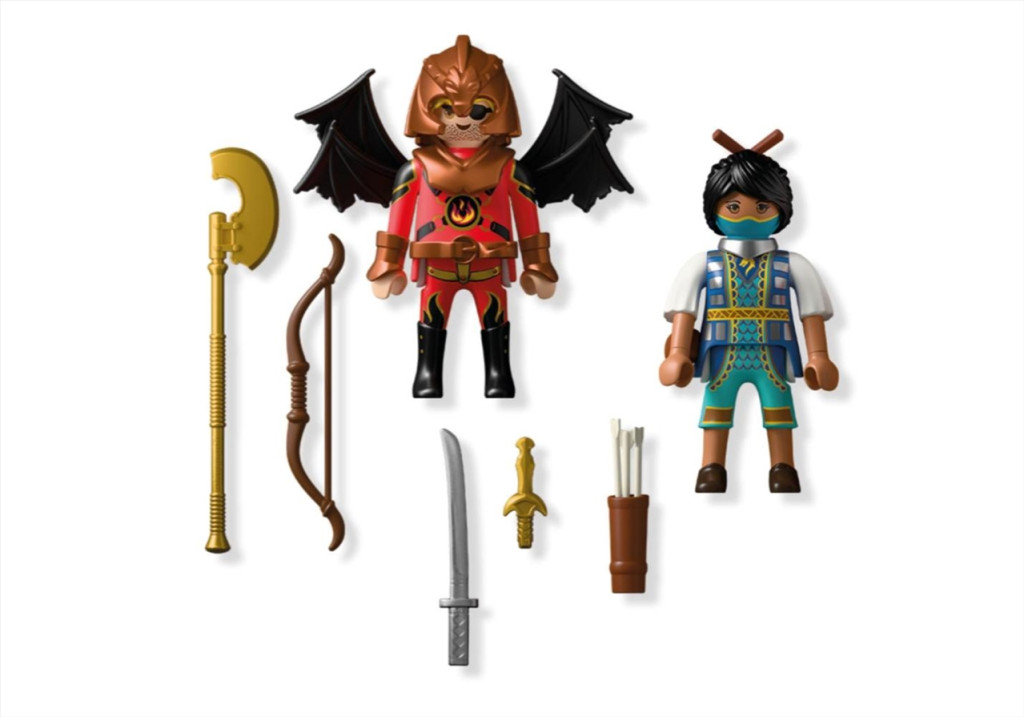 - 2 db PLAYMOBIL figura: 1 Burnham Raider sisakkal és levehető denevérszárnyakkal, 1 Novelmore lovag (női figura)