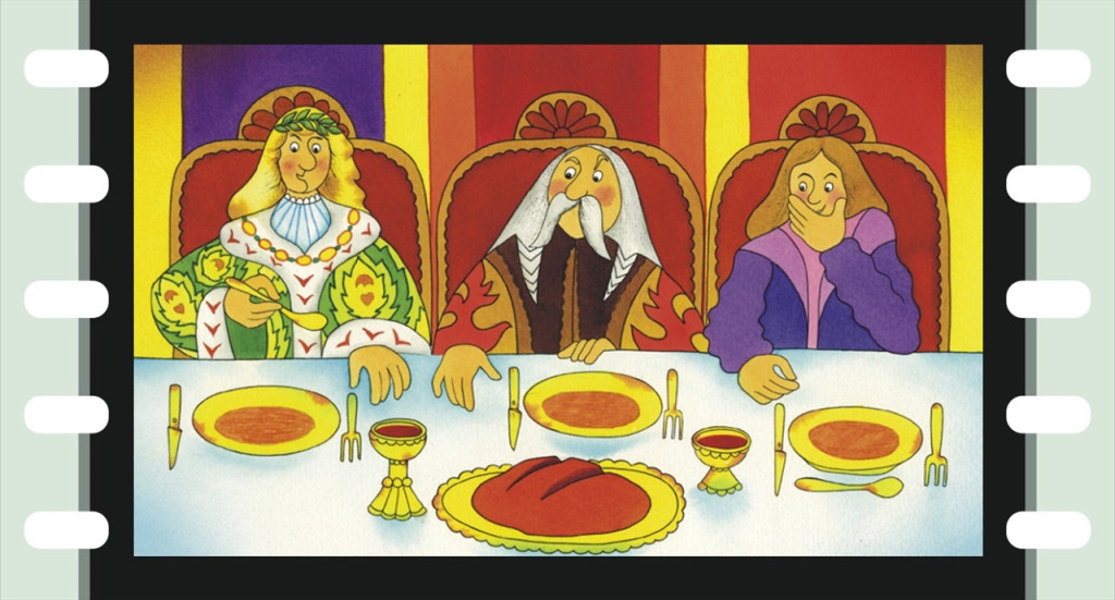 „A juhász nem sokat teketóriázott, leszelte a kenyér sarkát, a belét szépen kikanyarította, és a kenyér héjával egy cseppig kikanalazta a levest. A király meg az urak csak néztek. Végül azt mondja a juhász: – Felséges király atyám, én most meg azt mondom: eb, aki a kanalát meg nem eszi! – s azzal bekapta a kenyérhajat.”