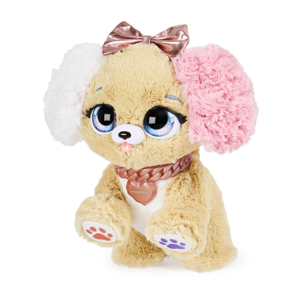 Minden kölyök kutyusnak kifejező szeme, puha, plüss teste és rózsaszínes részletei vannak a mancsán, a fülén és masniján. Nézd milyen nagyon aranyos! Amikor felfedi magát, az kölyök kutyus egy különleges kicsomagolós dalt énekel!