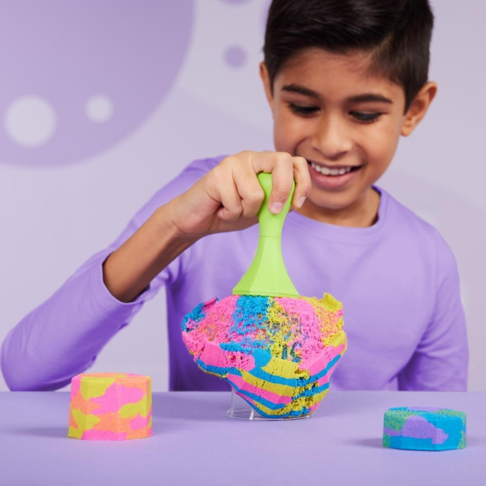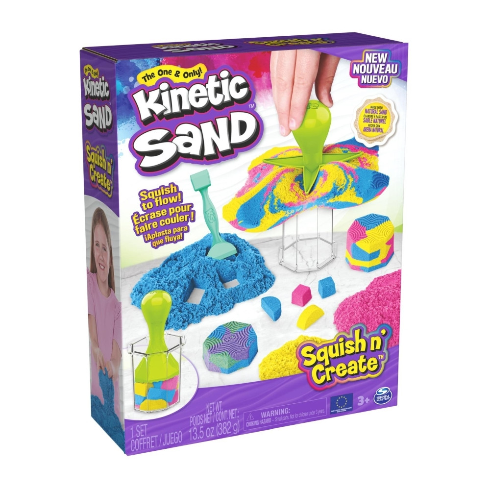 A Kinetikus Homok, Squish N’ Create Játékkészlet beindítja gyermeke fantáziáját és kreativitását! Ez a Kinetikus Homok játékkészlet 13,5oz mennyiségű Kék, Sárga és Rózsaszín homokot, valamint több mint 5 eszközt és formát tartalmaz, amelyek végtelen homokozási lehetőséget kínálnak. A gyerekek kedvükre keverhetik, rétegezhetik és formázhatják a homokot, és szabadjára engedhetik a fantáziájukat. A lenyomó fogantyúhoz a gyerekek különböző eszközöket csatlakoztathatnak, mint amilyen a Nyomó, a Vágó és a Formázó fej a legteljesebb homokos szórakozás érdekében! Ez a szenzoros homok soha nem szárad ki, így tökéletes a finom motoros készségek és a kreativitás elősegítésére, az órákon át tartó tapintáson alapuló játékhoz. A játékidő végén pedig gyerekjáték a takarítás! Az Első és Egyetlen Kinetikus Homok önmagához tapad, így nem kell aggódni a rendetlenség miatt. A játékkészlet nem csak nagyszerű alternatívája a kézműves modellező gyurmának, de remek kiegészítője a kézműves asztalodnak, a gyermekfoglalkozásoknak és a Montessori játékoknak is! Igazi menő játékok lányok és fiúk számára az önálló és fantáziadús építkezés ösztönzésére. Ha még több Kinetikus Homok mulatságra vágysz, töltsd fel a Kinetikus Homok készletedet a 2,5lb kiszerelésű színes Kinetikus Homok homokos zsákokkal (a játékok külön kaphatók)! A Spin Master egy, a gyermekek tanulását és fejlődését segítő innovatív és szórakoztató játékok létrehozása mellett elköteleződött vezető globális játék- és szórakoztatóipari vállalat. A Spin Master játékok olyan széles választékát kínálja fiúk és lányok számára, mint amilyenek az akciófigurák, a kirakós játékok, a társasjátékok, a kültéri játékok és még sok egyéb. Játékaikat úgy tervezték, hogy megragadják a gyermekek fantáziáját, elősegítsék a kreativitást és a problémamegoldó készséget, valamint órákig tartó szórakozást nyújtsanak.