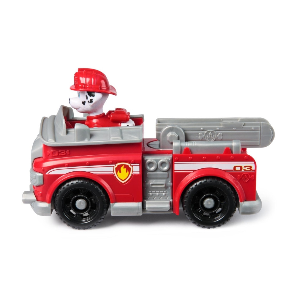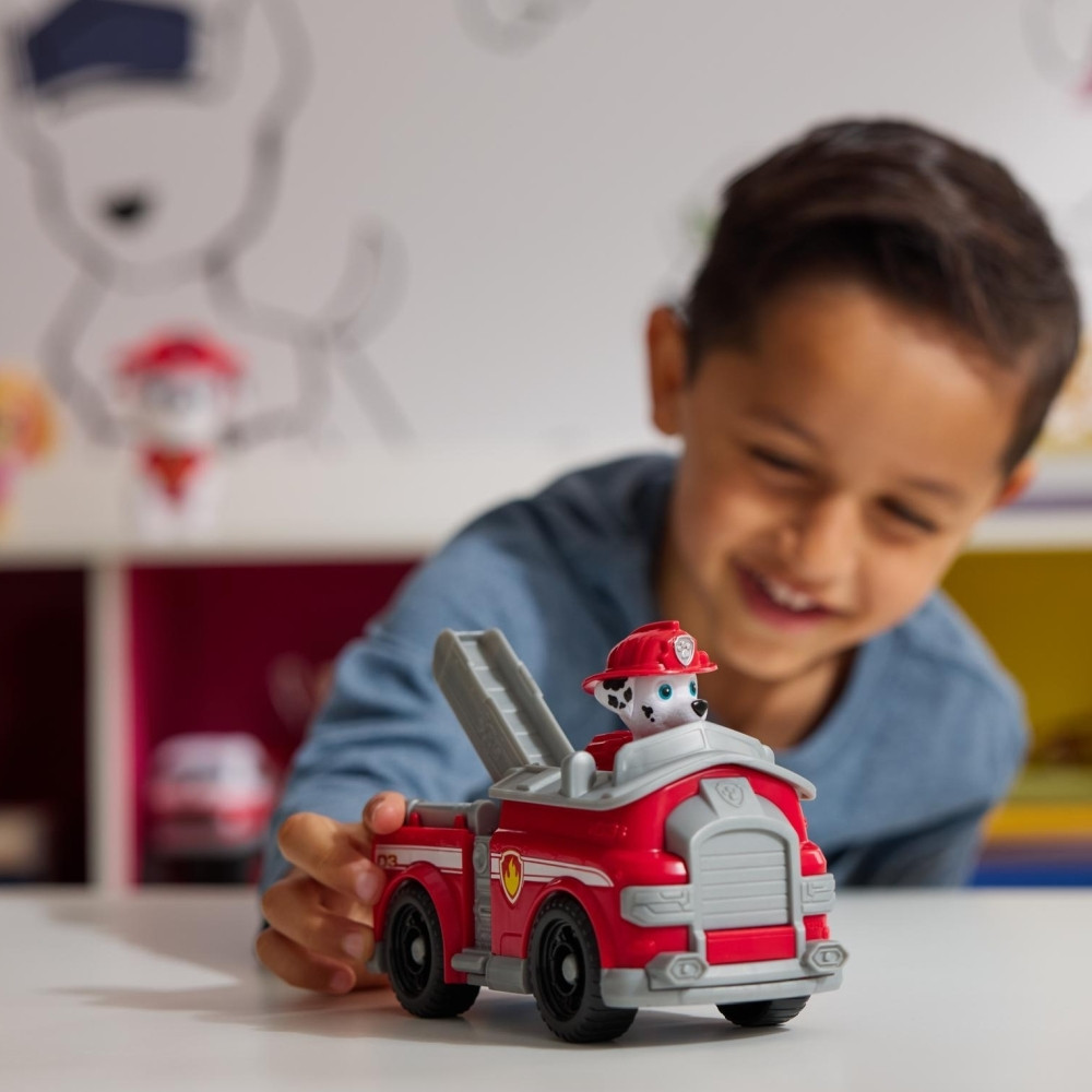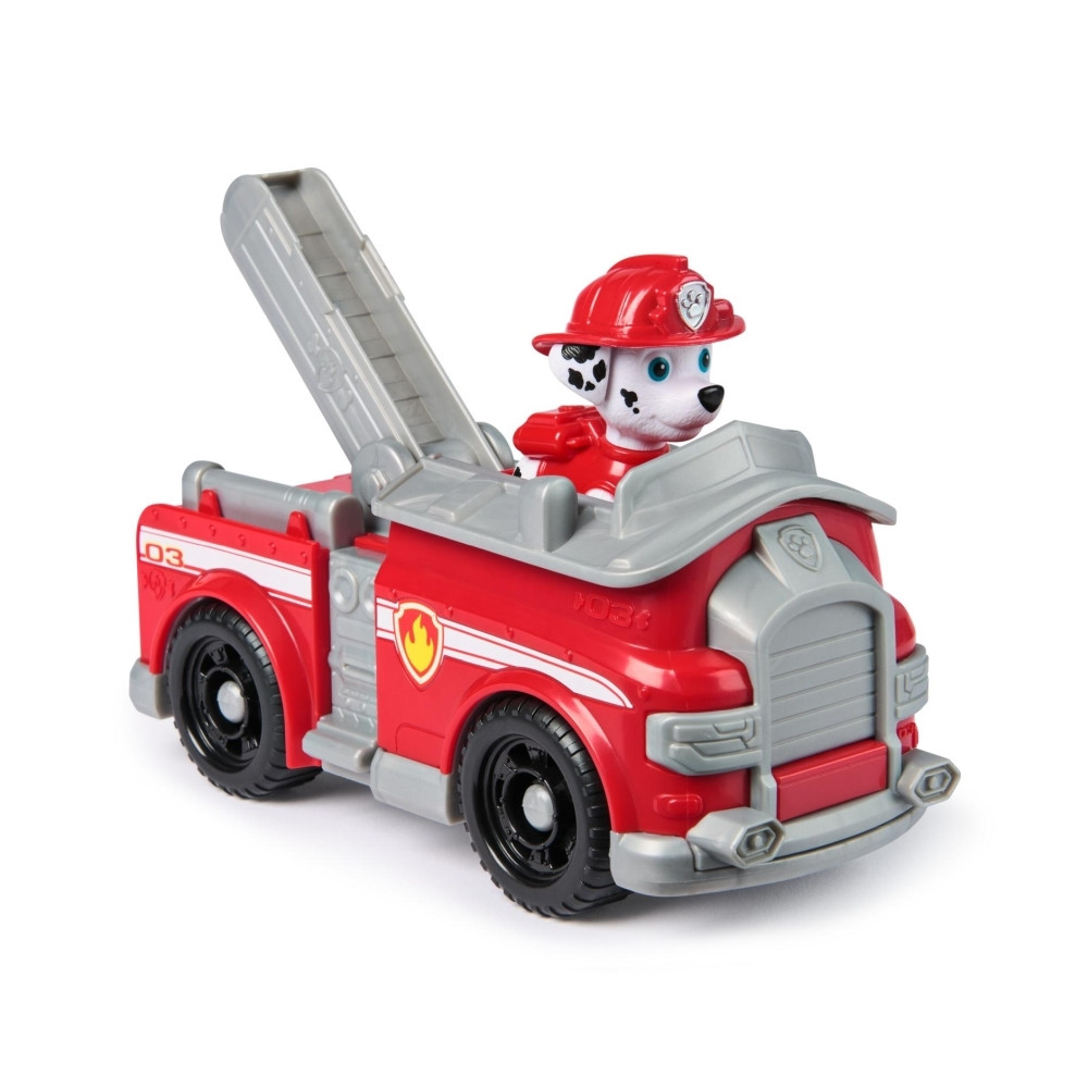 Úton a segítség a Mancs őrjárattal és mentőverdáikkal! Lendülj akcióba Marshall izgalmas küldetéseihez a tűzoltóautójával. Ha vészhelyzet áll elő, csak rögzítsd Marshall lábát a vezetőülésben, és hajts máris a mentőakció helyszínére a mozgatható létrával ellátott, mozgó kerekű járgánnyal! A Mancs őrjárat szeretett kutyija és járműve részletgazdag kidolgozással és valósághű funkciókkal kelti életre a sorozat minden izgalmas pillanatát. Marshall és játékjárműve környezettudatosan, legalább 80%-ban újrahasznosított műanyagból készült! Csatlakozz a többi kölyökkutyihoz és mentőverdáikhoz (mindegyik külön kapható), és segíts megmenteni a napot Kaland-öbölben!