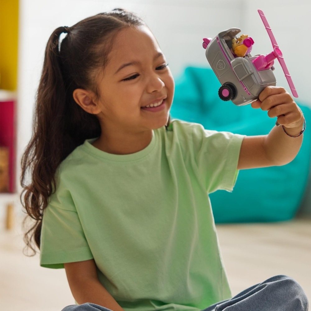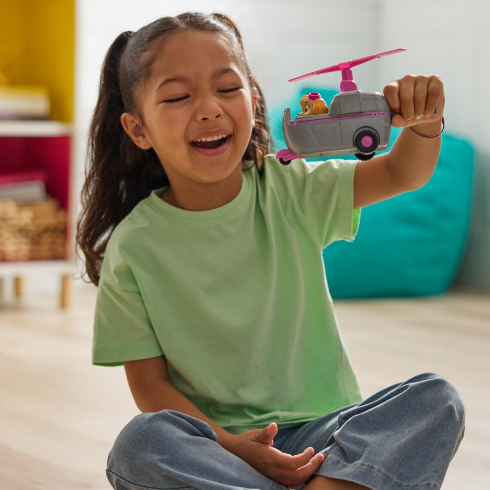 Úton a segítség a Mancs őrjárattal és mentőverdáikkal! Lendülj akcióba Skye izgalmas küldetéseihez a helikopterével! Ha vészhelyzet áll elő, csak rögzítsd Skye lábát a pilótafülkében, és hajts máris a mentőakció helyszínére a forgó légcsavarral ellátott, mozgó kerekű járgánnyal! A Mancs őrjárat szeretett pilótája és járműve részletgazdag kidolgozással és valósághű funkciókkal kelti életre a sorozat minden izgalmas pillanatát. Skye és játékjárműve környezettudatosan, legalább 65%-ban újrahasznosított műanyagból készült! Csatlakozz a többi kölyökkutyihoz és mentőverdáikhoz (mindegyik külön kapható), és segíts megmenteni a napot Kaland-öbölben!