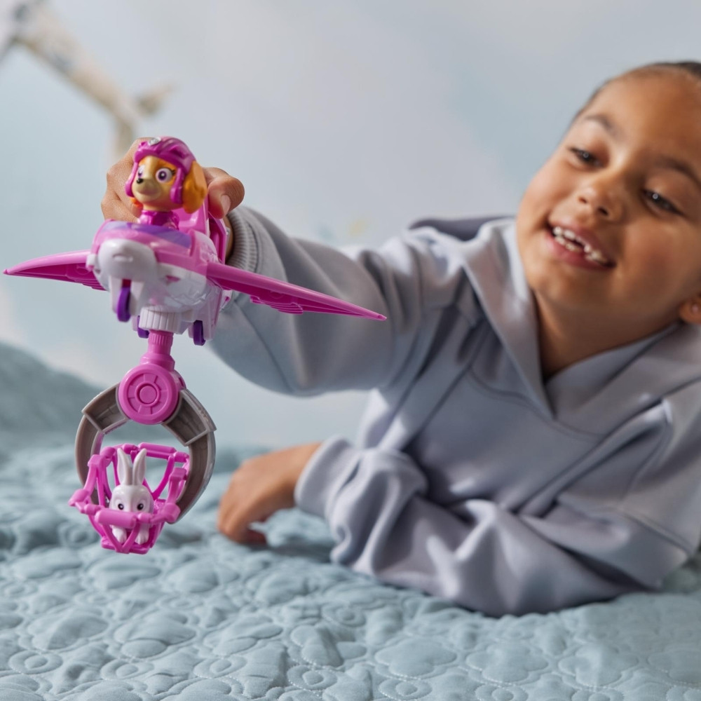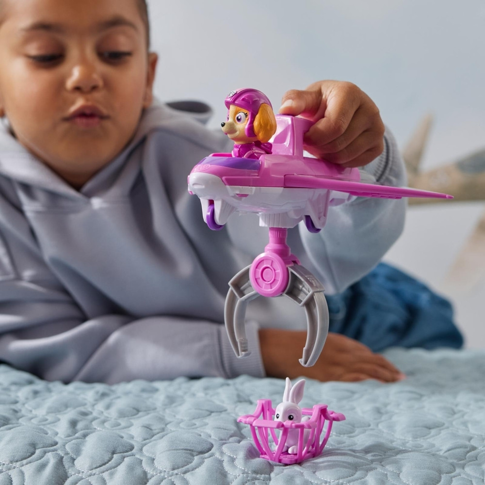 Repülj akcióba az Air Rescue Skye-val és tűzoltó játékrepülőjével Hero Claw-val! Amikor eljön a mentőakció ideje, rögzítsd Skye lábát a helyére a pilótafülkében, mielőtt küldetésedre indulnál! Mentsd meg a játéknyuszidat, nyomd meg a repülőn lévő gombot, engedd ki a kampót, majd szedd fel a nyuszit a mentőkosárral és repítsd biztonságos helyre! Skye több mint 5 cm magas, és rózsaszín Air Rescue légimentős kabátjában és sisakjában érkezik a bevetésre! Ha még több izgalmas játéklehetőségre vágysz, keresd Chase-t a Hero Helikopter-ével és Marshallt a Hero Hydro Airplane játékrepülőjével, és állítsd össze a végső mentőcsapatot!