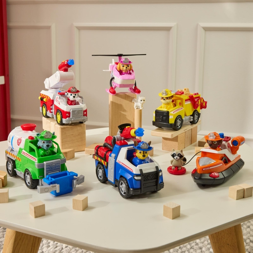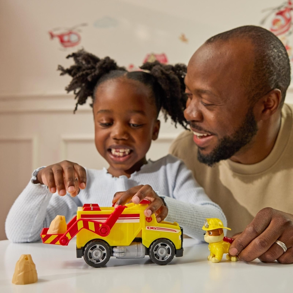 Ez a kb. 18 cm-es jármű és a hozzá tartozó 5 cm-es Rubble figura pontosan úgy néz ki, mint a mesében, és készen áll a legmerészebb mentőakciókra.