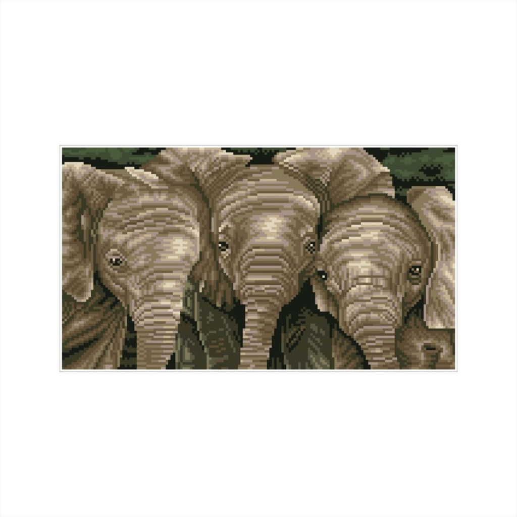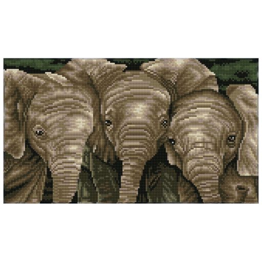 Ez a kép három elefántot ábrázol. A kép mérete 26,50 x 46,50 cm, így a kép inkább középhaladóknak javasolt.