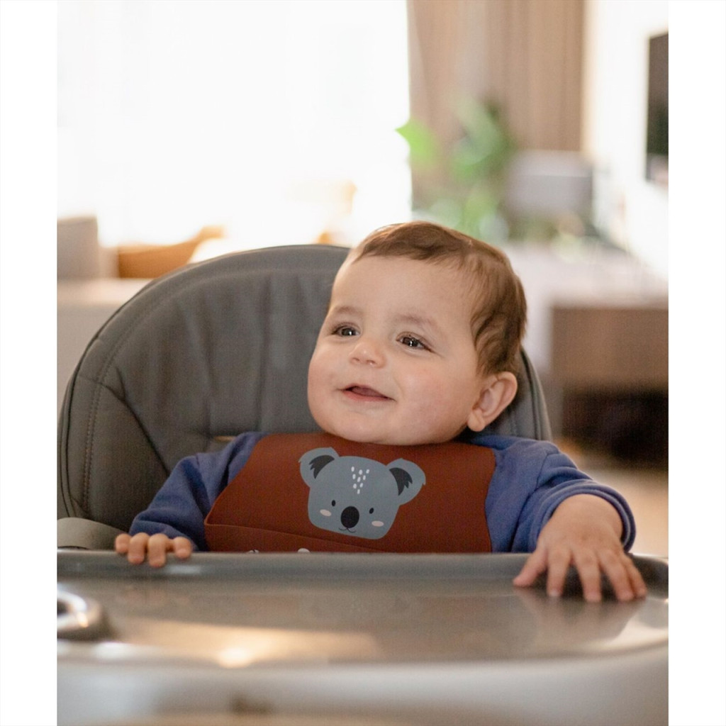 Ez a Kyle koala dizájnú szilikon előke gyönyörű, trendi színe van! Az előke gyűjtőzsebbel van felszerelve, és hat különböző nyakbeállítási pozícióval rendelkezik.