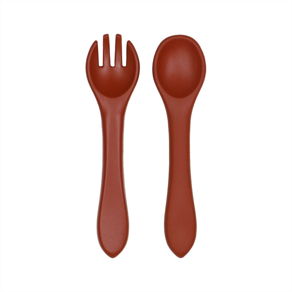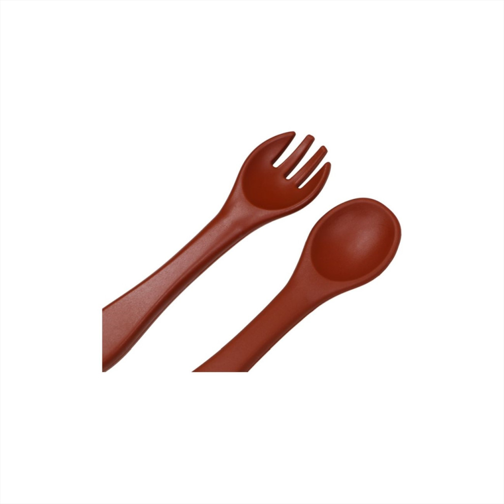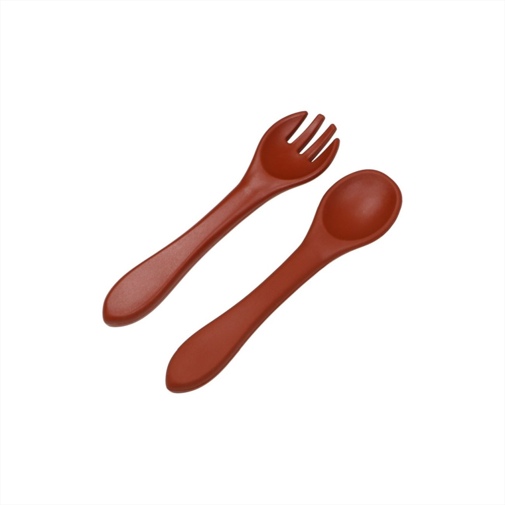 Ez a gyönyörű készlet egy villából és egy kanálból áll, amelyek 100% szilikonból készülnek (LFGB minősítés). Fogantyújuk formája alkalmas a kisgyermekek kezére.