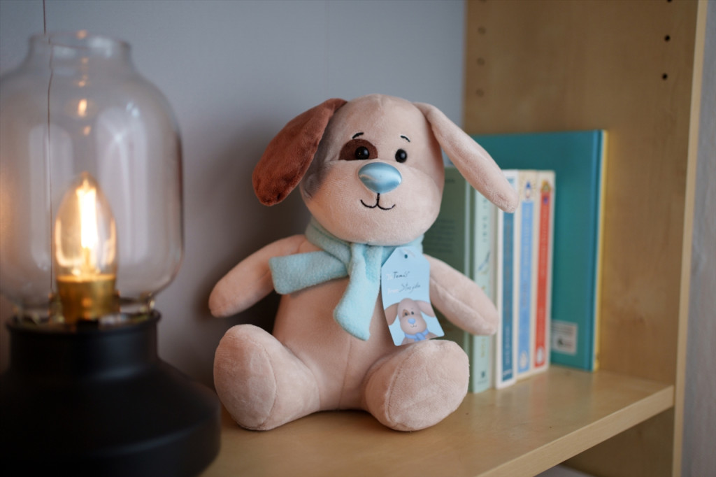 Ez a puha, bújós barna kutya pillanatok alatt a gyerekek legjobb barátjává válik. Bársonyos tapintású, megnyugtatja őket, nappal elkíséri a kicsiket az oviba, éjszaka pedig hűségesen őrzi az álmukat. Kedves, fényes orra és barátságos megjelenése miatt könnyű megszeretni.
