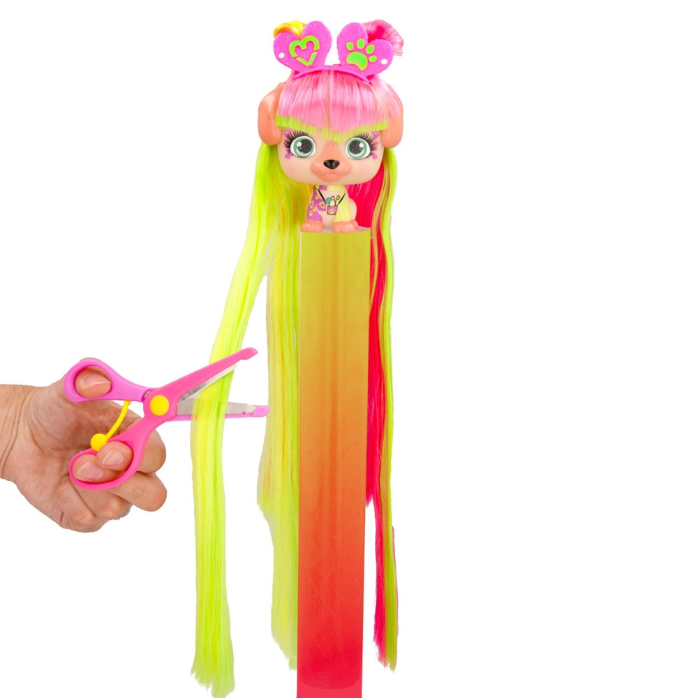 Ismerd meg a VIP PETS HAIR ACADEMY imádnivaló, hosszú szőrű kutyáinak legújabb sorozatát! 5 stílusos kutyus gyűjthető össze: Lady Gigi, Nyla, Alexia, Zoe és Miley vár rád! Zoe-nak nagyon élénk színű haja van. Mancs és szív motívumokkal díszíthető. Ha szeretnéd, vágd le az egyik tincsét és fond be díszesen, majd add hozzá a kész frizurához. Mindegyik figurának 40 centiméter hosszú a haja, és a csomagban található kiegészítőknek köszönhetően a végtelenségig formázható a frizurája. Érezd magad igazi fodrászként és engedd szabadon a fantáziád, mint a VIP Hair Academy büszke tagja! A csomag tartalma: egy figura, 5+ kiegészítő, 1 szórólap.